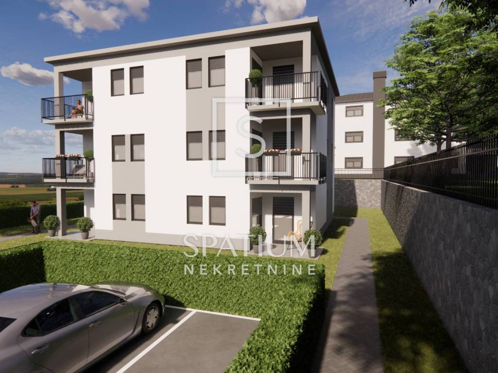JUŠIĆI, we offer an apartment in a new building located in a quiet area. It consists of two bedrooms, dining room with living room, kitchen, hallway, bathroom and terrace. It has a parking space in the garden. Underfloor heating is electric, ceramic, parquet, PVC joinery with electric aluminum shutters. Six apartments in the building, two semi-detached buildings. On the ground floor there is a storage room where the boiler room is located. The facilities are under construction, under the roof, and the planned completion of the works is the end of 2023. Square footage: - kitchen and dining room 14.00 m2 - living room 15.48 m2 - room 1 11.47 m2 - room 2 11.6 m2 - bathroom 6.12 m2 - corridor 5.88 m2 - terrace 12.25 m2
