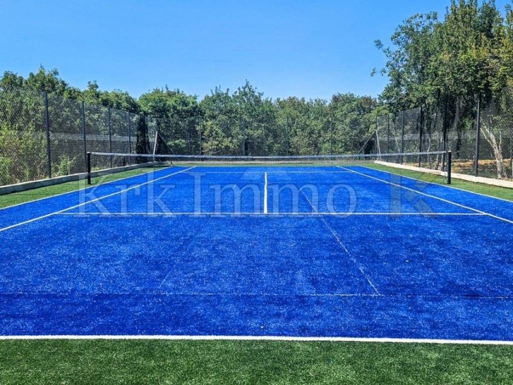 The large garden area of 4000 m2 has a swimming pool measuring 9.60m x 3.80m and a tennis court with an artificial grass surface. The floor coverings in the garden will be made of Benkovac stone, and the house boasts top-quality equipment and quality materials. This peaceful oasis offers a relaxing vacation away from the city hustle and bustle, and due to the large garden, it is a real rarity on the market and is therefore a perfect opportunity for investment in tourism.