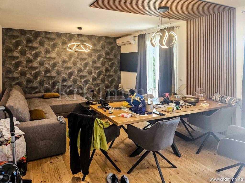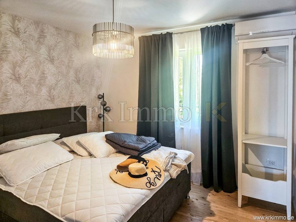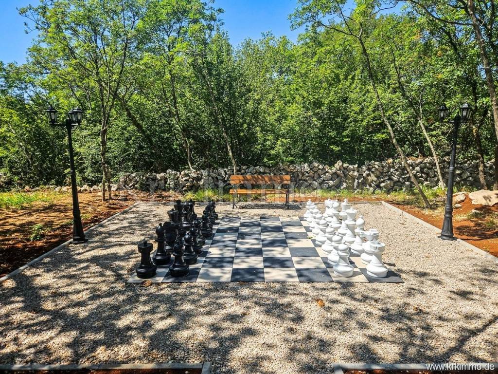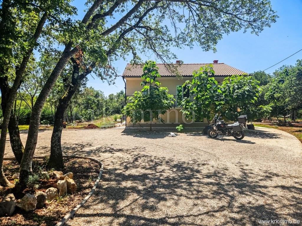 For sale is a holiday house with a large garden, in a quiet location near the town of Krk. The house has a total living area of 350 m2, and consists of a ground floor and an upper floor.