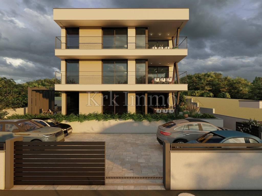 This newly built luxury apartment is on the first floor of a modern villa with a total of three residential units in an excellent location in the city of Krk.