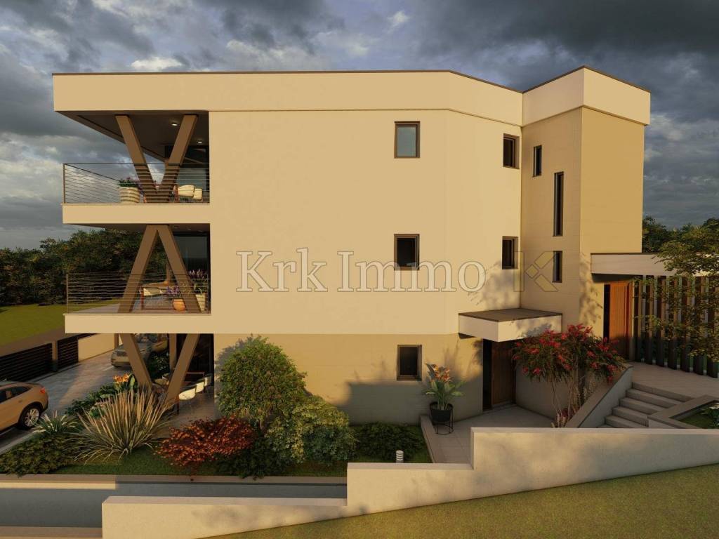 For sale is a new apartment on the ground floor of a luxurious modern villa with three residential units in the city of Krk, not far from the sea and all the necessary facilities.
