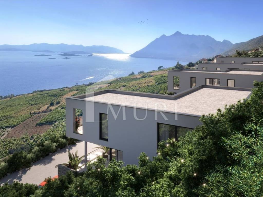 In the attractive elevated area of Postup on the Pelješac peninsula, offering a stunning panoramic view of the Adriatic Sea, Korčula, and the surrounding archipelago, a modern villa is planned — combining top-tier comfort, elegant design, and proximity to the sea.
