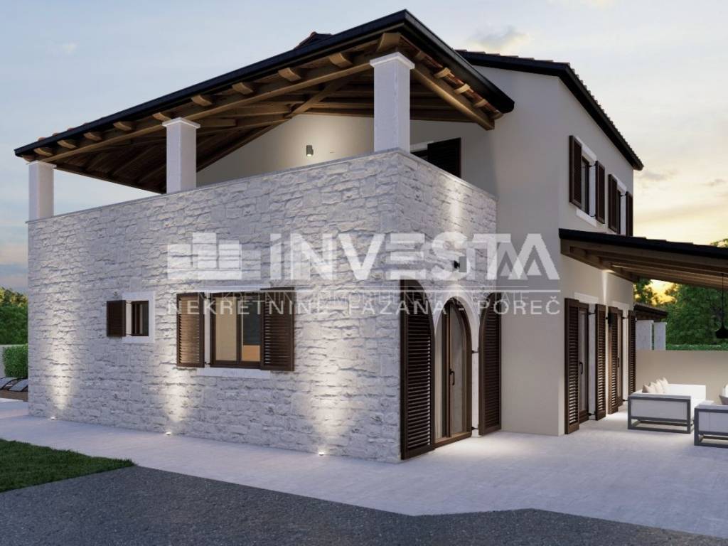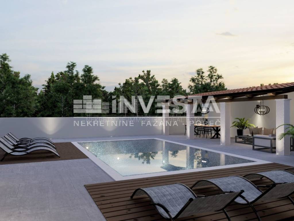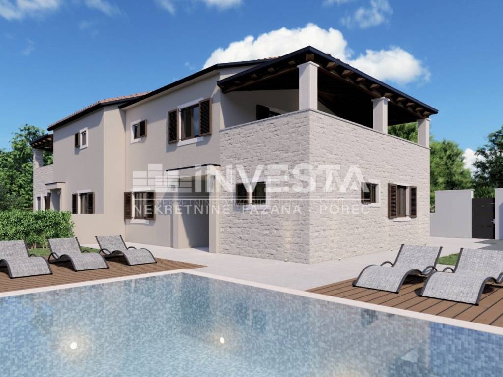 A modern semi-detached villa is for sale in a highly sought-after location, just 5 km from the center of Poreč.