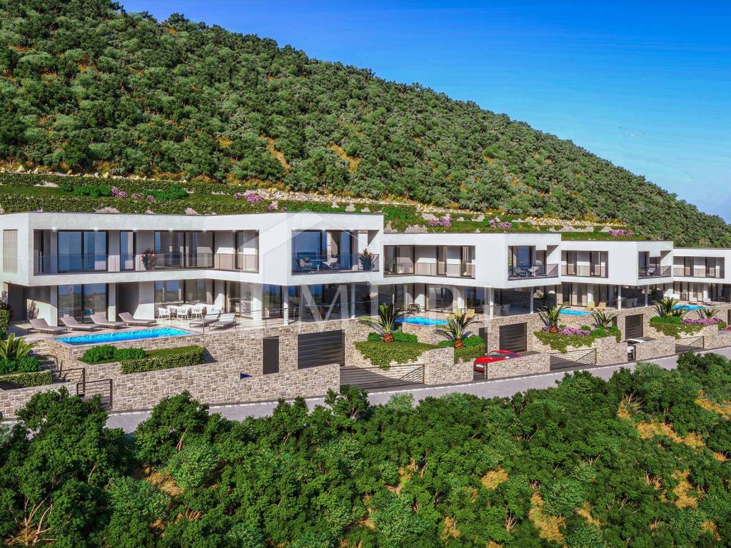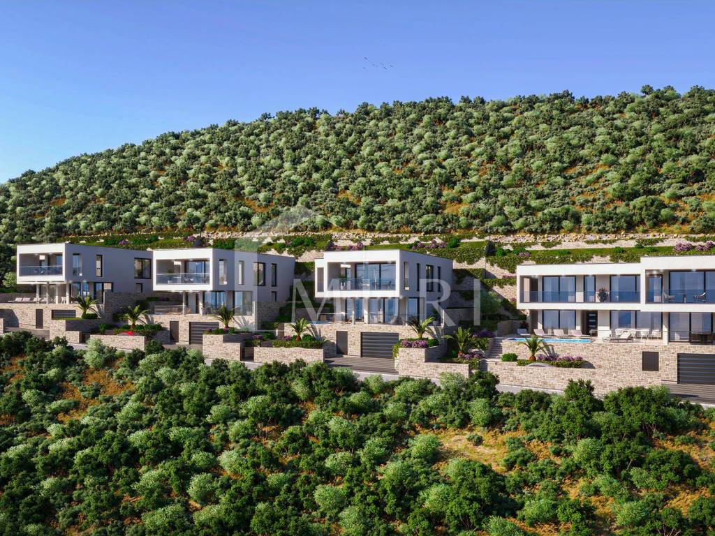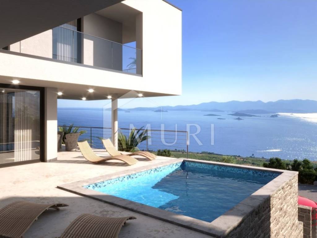 Located on a prestigious elevation in the village of Postup on the Pelješac peninsula, this modern villa offers a breathtaking panoramic view of the Adriatic Sea, the island of Korčula, and the surrounding archipelago. It combines contemporary architecture, exceptional comfort, and seamless integration with the Mediterranean environment.