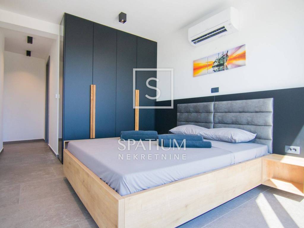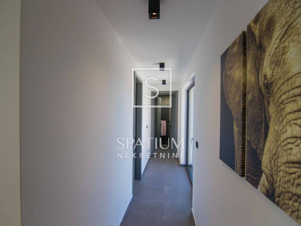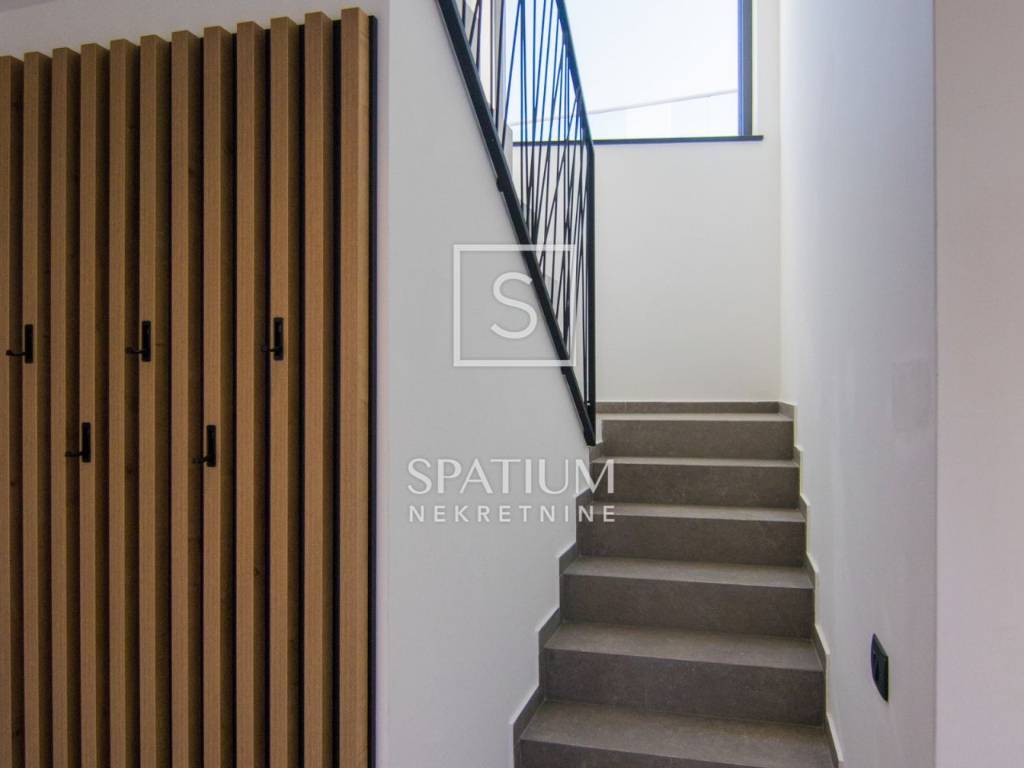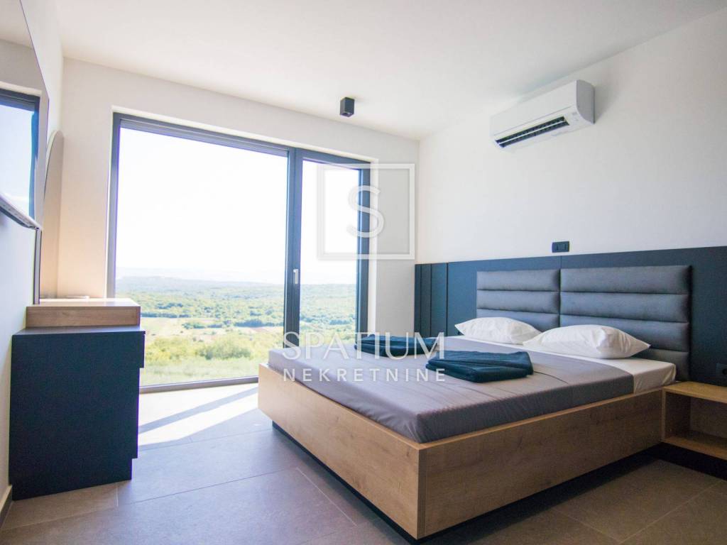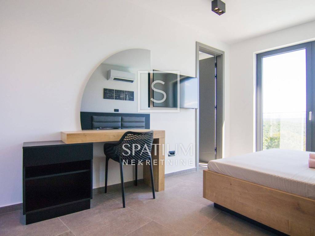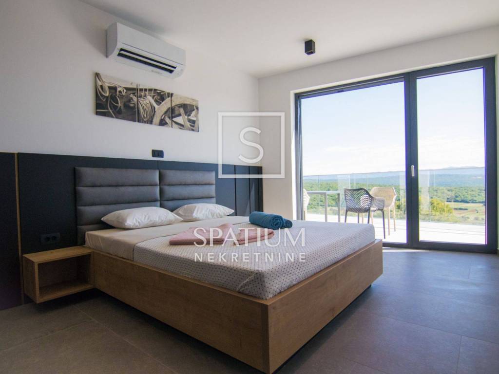 ISLAND OF KRK, SURROUNDINGS OF KRKA, we have received a unique property worthy of attention. This luxury villa with a swimming pool, a total living area of 190 m2 and a spacious garden of 730 m2 is located in a quiet part of the island of Krk, and consists of a ground floor and an upper floor. On the ground floor of the villa there is a garage, a spacious living room with a kitchen and a dining room, a storage room with a washing machine and a dryer, a toilet, an exercise and wellness area. The yard of the house will consist of a covered terrace, a sunbathing area, an overflow pool and a barbecue. On the first floor of the villa there will be four bedrooms, four bathrooms and a hallway/staircase. Three bedrooms will have access to a common balcony, which will offer a beautiful view of olive groves, mountains and the sea in the distance. The development of the city of Krk begins with the urbanization of the existing pre-Roman settlement. The medieval period was marked by its dominance of Venice. At that time, Krk was ruled by Frankopan princes for several centuries, and their Frankopan castle has been preserved to this day. Next to the castle is Kamplin Square, where numerous concerts, events and theater performances are held during the summer. If you wander into one of the stone-paved streets of Krk, you will always easily return to Vela placa, the main square of the city of Krk, whose beauty is complemented by a Renaissance fountain. For other information, please contact us with confidence.