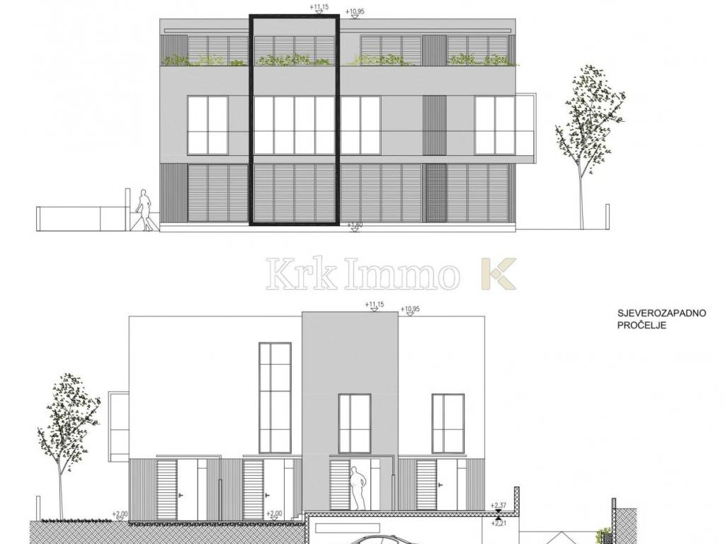For sale is a three-story apartment located in an apartment building with four residential units. This new property offers a spacious 90 m2 and is decorated in a modern and luxurious style. It is in a quiet location in the city of Krk, only 350 meters from the sea and the city center.