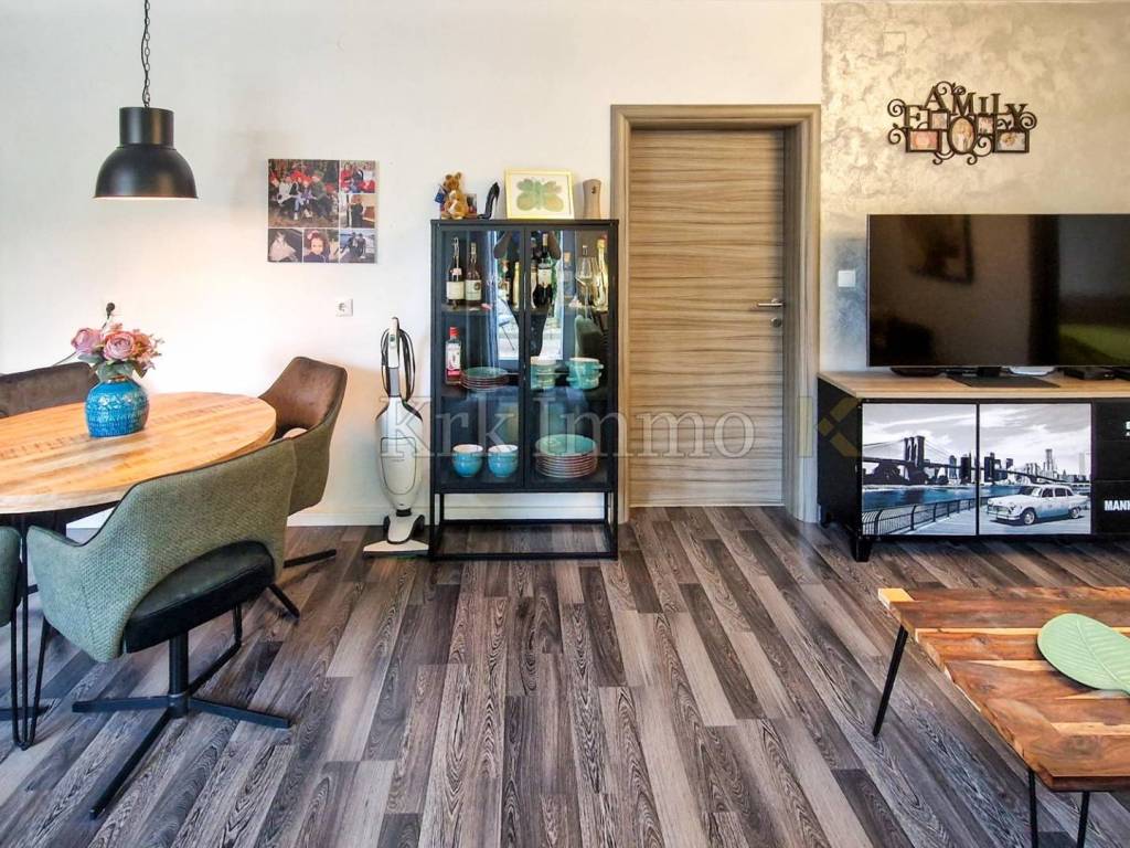 This modern apartment is the perfect choice for those who want a peaceful life in the town of Krk, close to the coast and all city amenities. The connection with nature and the comfort of this home make it ideal for family living, as well as for rental for tourist purposes.