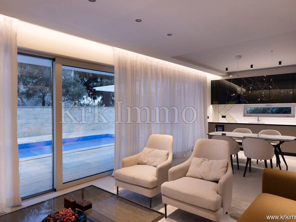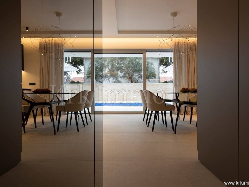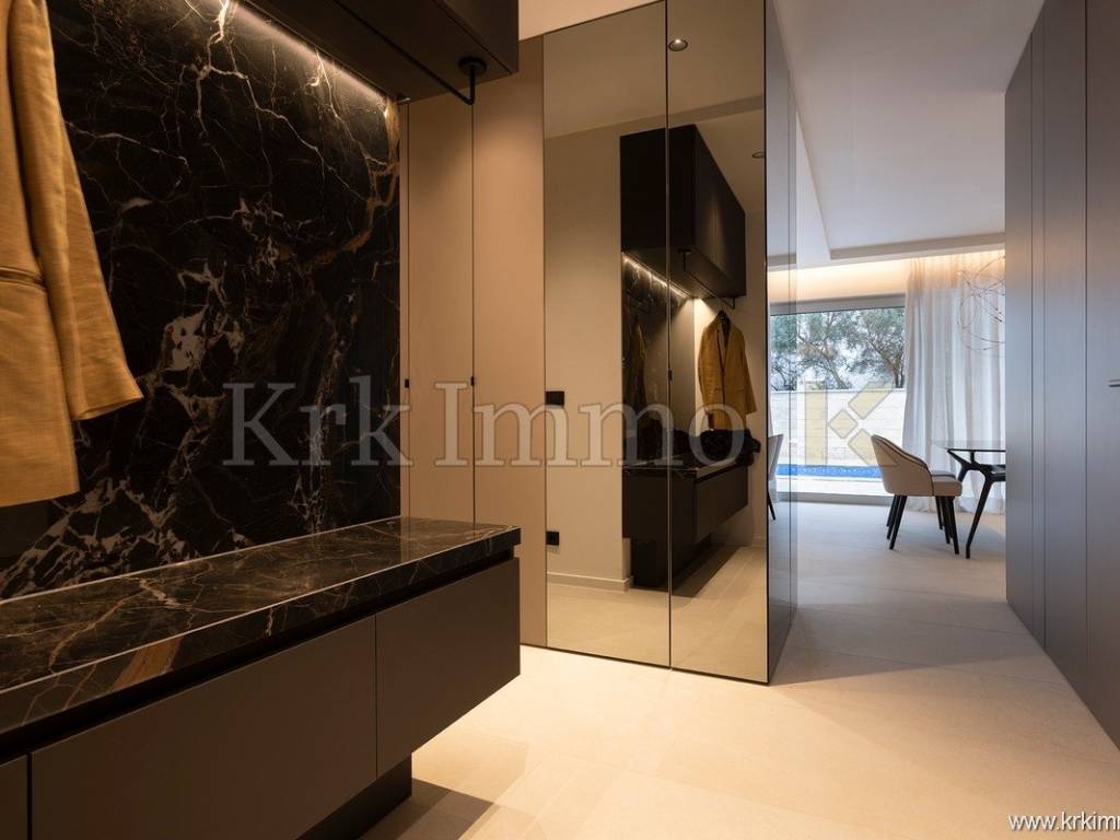 Find your quiet corner in the heart of Krk with this modern apartment located in the subterranean level of an elegant building. In the immediate vicinity of the picturesque coast, only 200 meters from the sea and the beach, this is the ideal place to enjoy all the charms that the city of Krk has to offer.