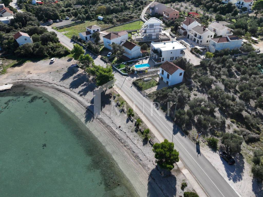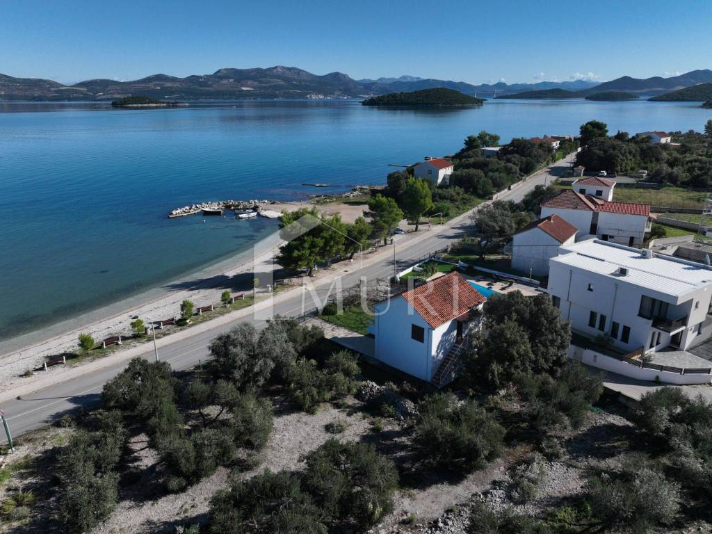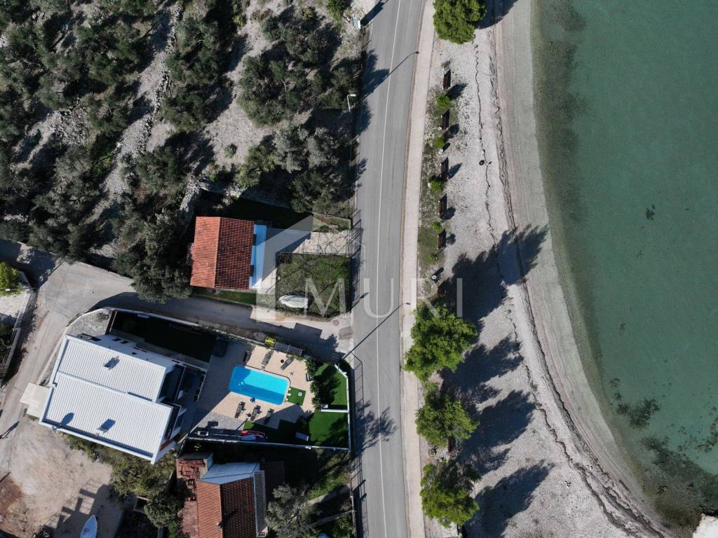 The house is situated on a regular-shaped plot of 340 m², of which 282 m² is a yard, with 3 secured parking spaces. In front of the house stretches a well-maintained pebble beach approximately 300 meters long, and a boat mooring is available directly next to the house, further enhancing the value and functionality of the property.