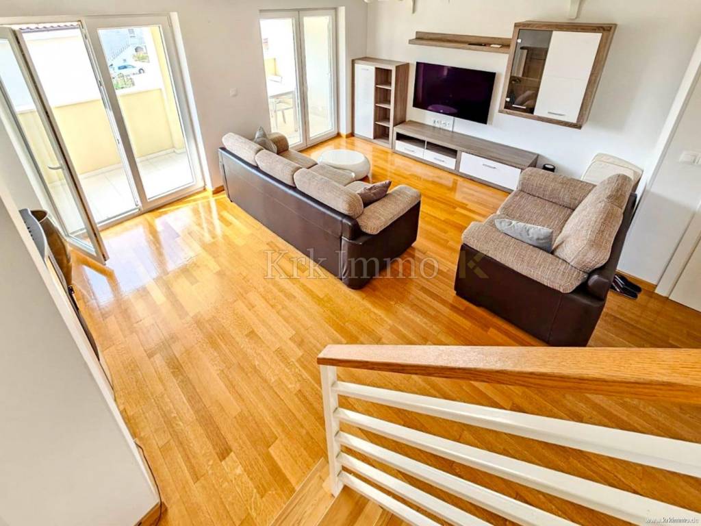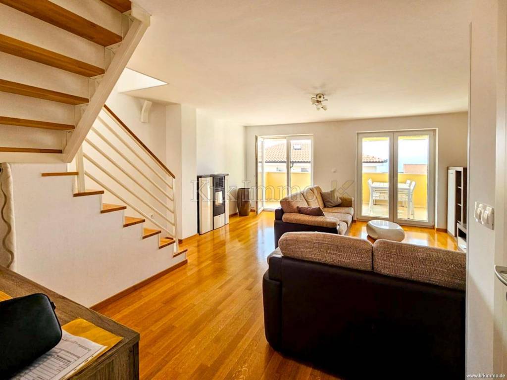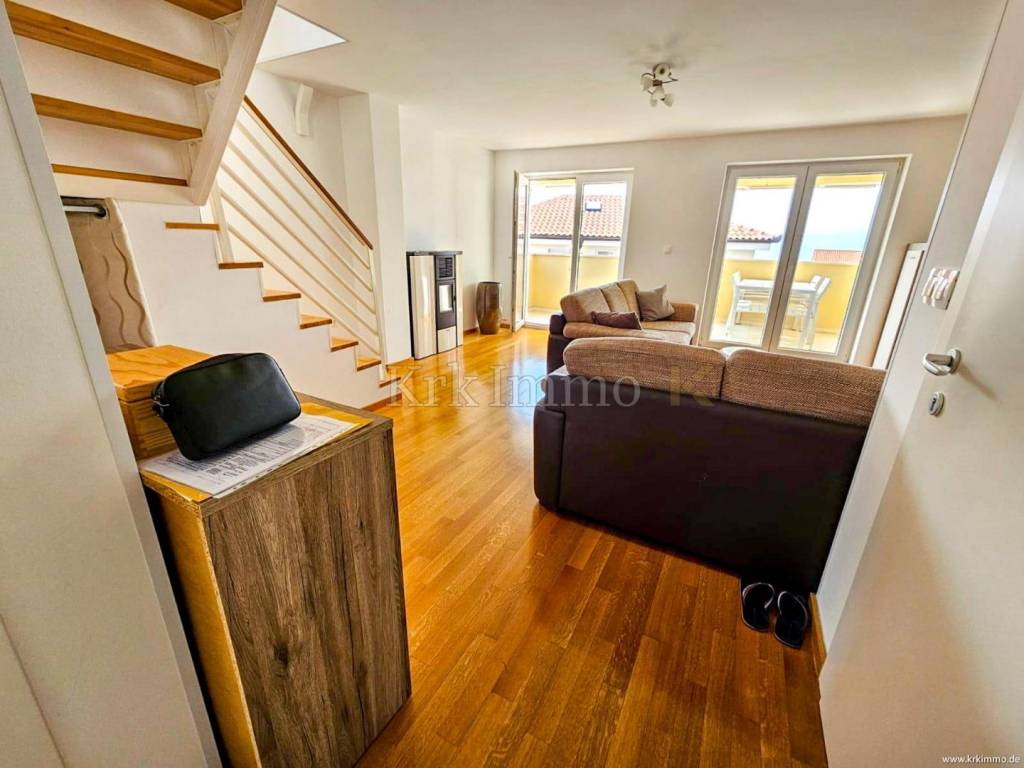 For sale is a two-story apartment on the first and second floor of an apartment building, located in the beautiful surroundings of Malinska! It is located only 1 km from the sea and is close to all necessary facilities. This spacious apartment covers 100 m2.