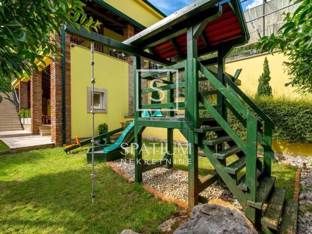 BREGI, MATULJI, we are offering a tourist property of recent construction in the Mediterranean style with two separate residential units, a swimming pool, a guest house, a children's playground and a tavern. The total area is 536m2, and it is located on a plot of 790m2. In nature, the house is divided into 4 floors: basement, ground floor and two floors. The basement is made as a tavern with a large covered summer terrace and a bathroom, and a prepared room that can be used as a hobby area, storage for bicycles, motorcycles or various other machines for arranging the garden. On the ground floor is a large apartment of 145 m2, consisting of two bedrooms, a large covered terrace, a kitchen with a dining room and a bathroom. The first and second floors are organized as a two-story apartment with an area of 290m2, consisting of four bedrooms, a kitchen with a dining room, two bathrooms and two terraces. The apartments are fully decorated and furnished and all are rented for the purpose of tourist rental. The yard is completely fenced. The house is under alarm and video surveillance. On the paved courtyard there is a covered summer kitchen, a beautifully landscaped garden, a jacuzzi for 6 people, a swimming pool, a sun deck. The house offers a beautiful view of the sea and the surrounding area, sunrise and sunset. It was built in a quiet part of Brega, above Opatija. It is sold fully furnished and equipped. The house is rented for tourists, categorized for 18 to 22 people and generates excellent annual income. For all information, contact with confidence. Bregi is a quiet part of the rural area that belongs to the municipality of Matulja. Until the territorial reorganization in Croatia, they were part of the old municipality of Opatija. The history and tradition of Brega can be attributed to the municipality of Matulja, where in the past milkmaids walked centuries-old roads, bell ringers chased away winter and heralded spring, and distinguished travelers came by train to the Opatija Riviera. Leo Cerniar mediation assistant +385 95 901 4093 leo@spatium.hr Spatium nekretnine +385 51 272 903 info@spatium.hr