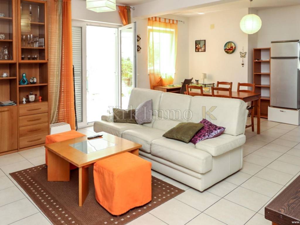 For sale is a ground floor apartment in the town of Krk, in an excellent quiet location, only 500 meters from the sea. The apartment has an area of ​​62 m2 and offers a functional arrangement of rooms for a comfortable life.
