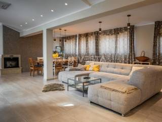 The upper level has large terraces surrounding the apartment. The terraces provide spectacular views of the surroundings and the sea, ideal for outdoor relaxation, sunbathing, or evening gatherings.