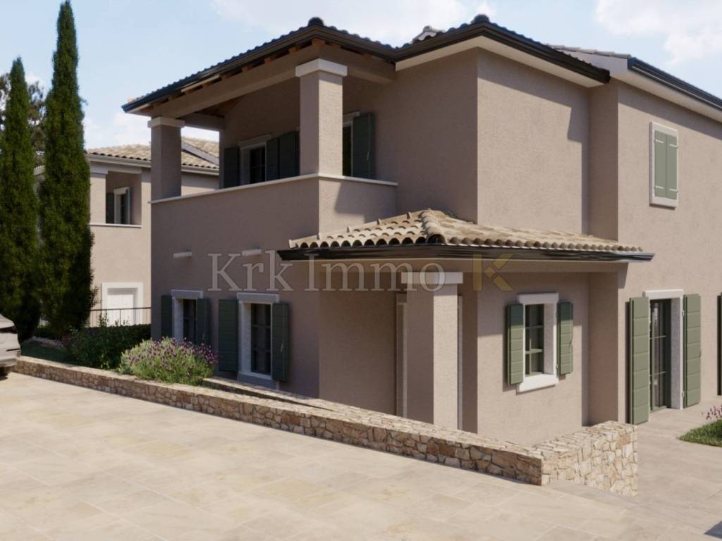 For sale is a modern villa in a quiet location on the island of Krk. This elegant property is located in the surroundings of family houses, on a spacious plot of 684 m2, providing privacy and peace. The villa is spread over two floors with a total area of ​​150 m2.