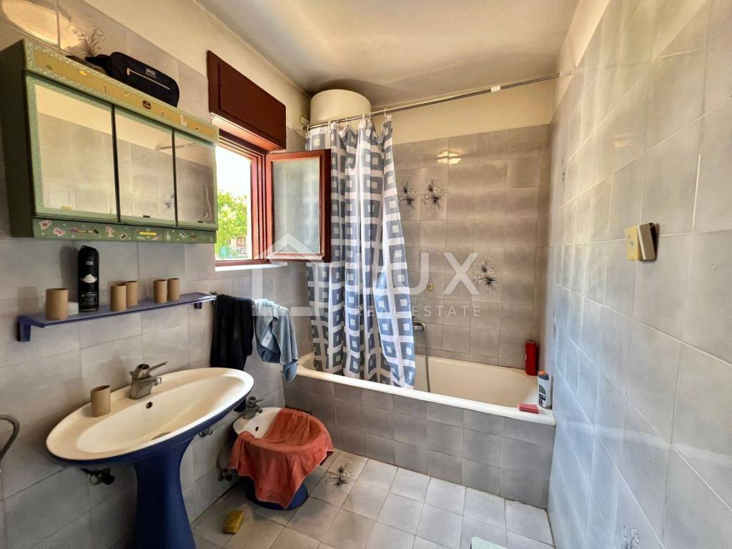 The house consists of 2 floors and a basement. The ground floor consists of an entrance hall / vestibule, bathroom, kitchen, three bedrooms (one of which can be converted into a living room) and a storage room. External stairs with a separate entrance lead to the 1st floor, which has the same floor plan and also has access to the attic. The house is south-facing and the balcony on the 1st floor offers a view of the sea, while the terrace on the ground floor is surrounded by greenery and shade.