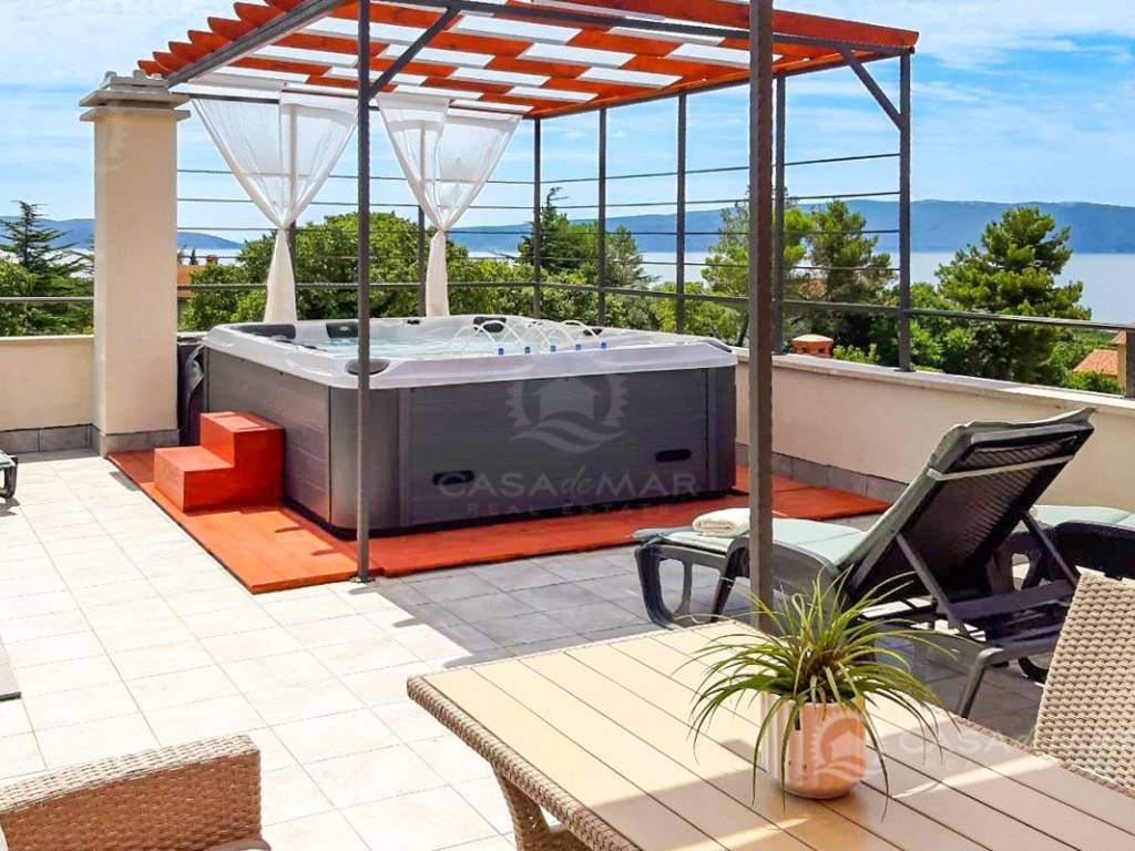 The house boasts a unique feature, a phenomenal place for relaxation and socializing – a rooftop terrace with a jacuzzi and a lounge area. Enjoy a hydro-massage or sunbathing with a breathtaking view of the sea.