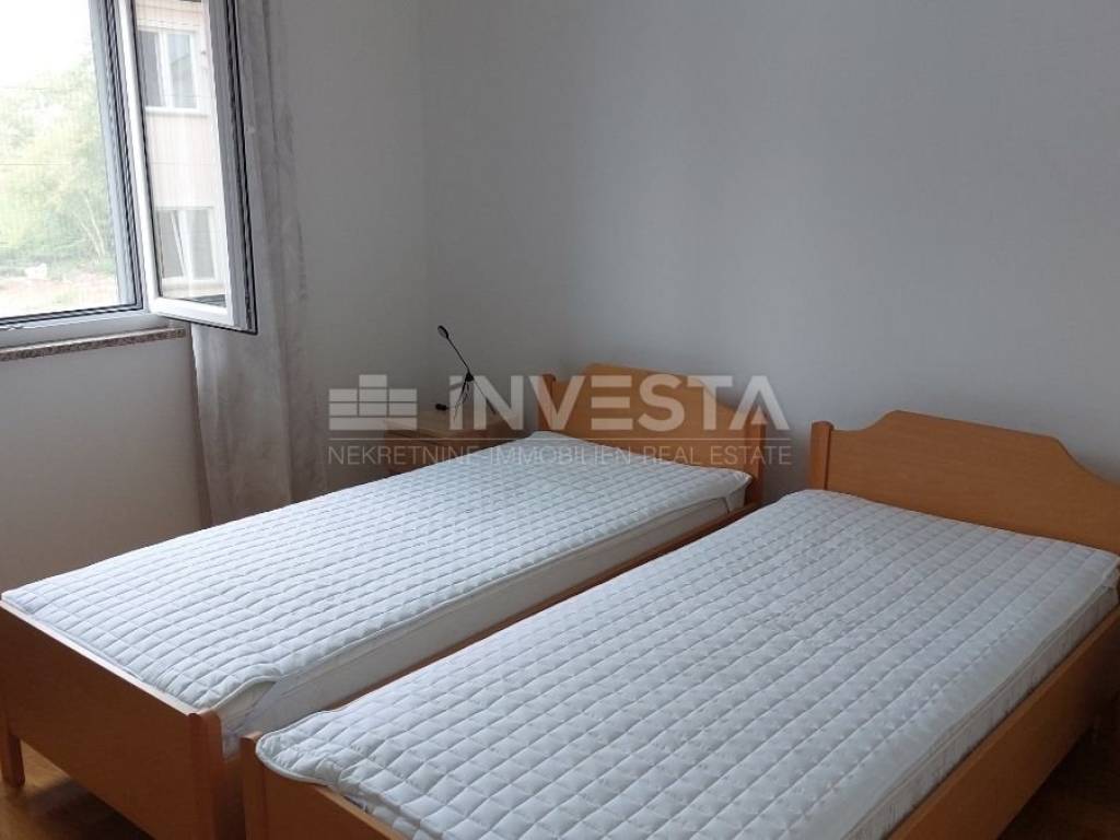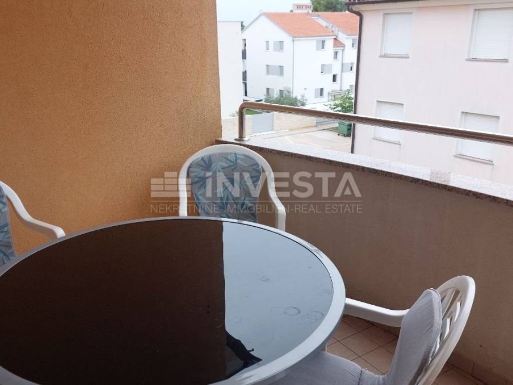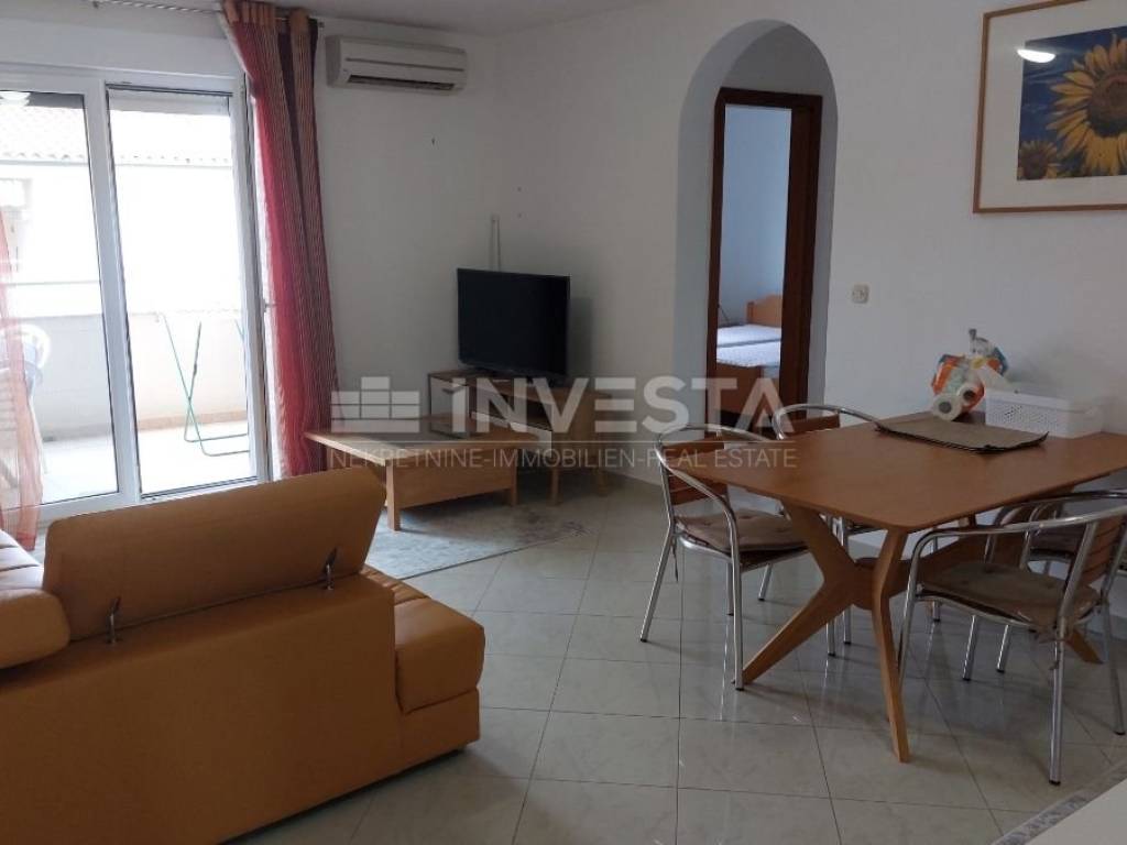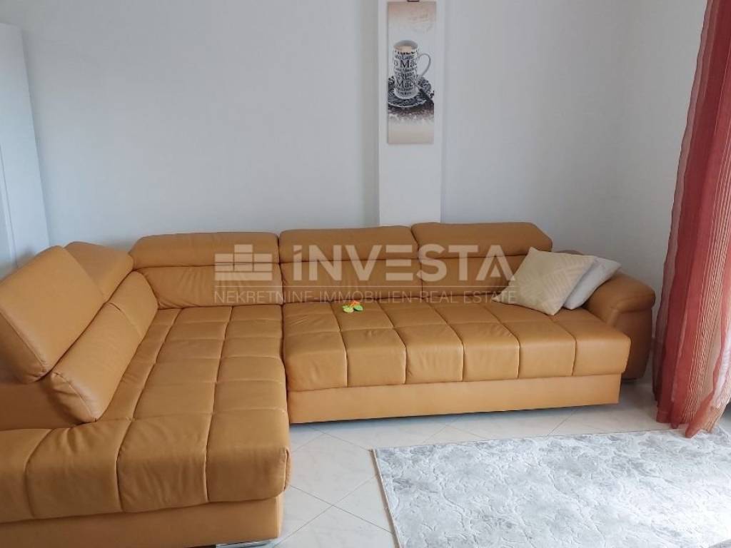 In the quiet village of Karigador, an apartment on the second floor of a residential building, with an area of 80.45 m², is for sale. The apartment consists of an entrance hall, a living room with access to a loggia, a kitchen with a dining area, two bedrooms, a bathroom, and a toilet. A storage room of 5.66 m² is also included. The apartment is sold fully furnished. It uses an air conditioning unit for heating and cooling. In front of the residential building, there is parking for residents. The location is very quiet, just 250 m from the sea and beaches. The towns of Novigrad and Umag are only a few kilometers away, where all amenities can be found, including shops, shopping centers, a health center, a school, banks, etc.