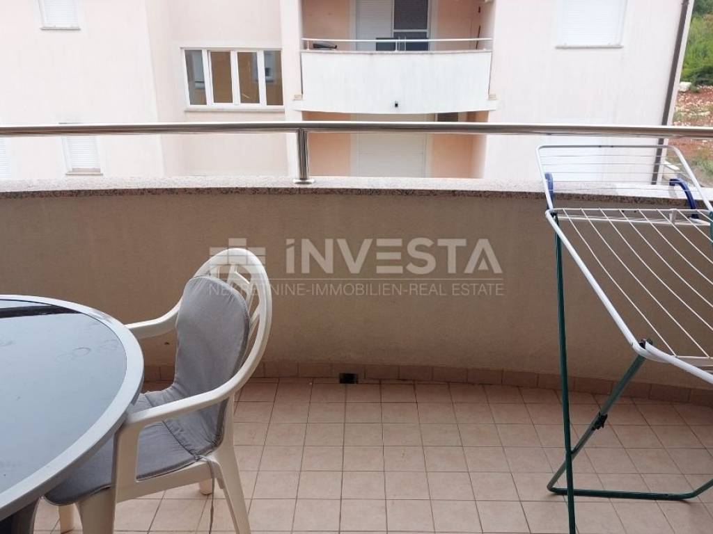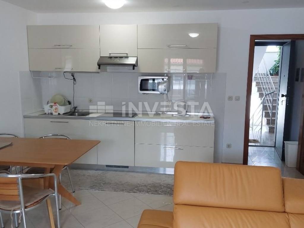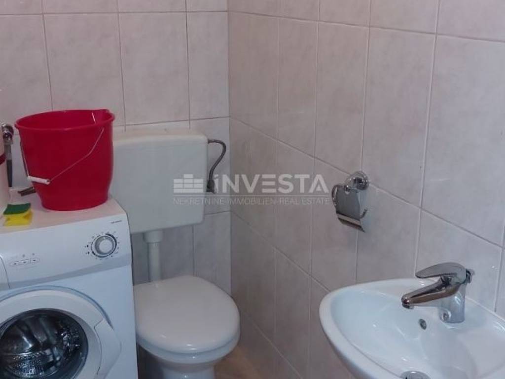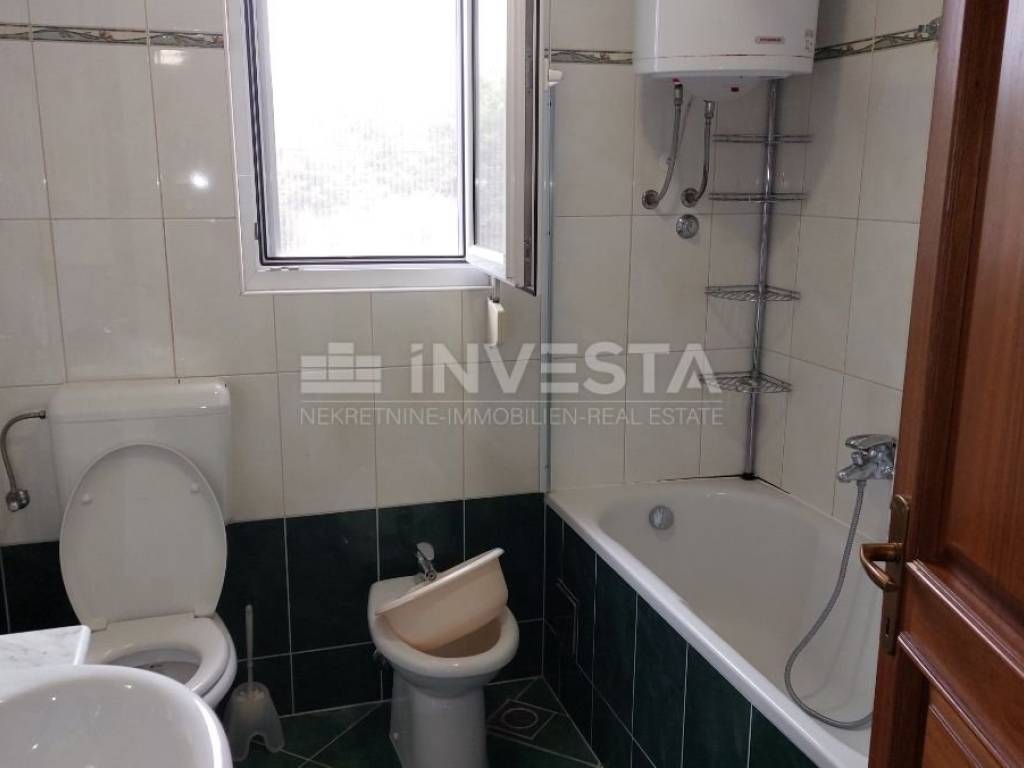 In the quiet village of Karigador, an apartment on the second floor of a residential building, with an area of 80.45 m², is for sale. The apartment consists of an entrance hall, a living room with access to a loggia, a kitchen with a dining area, two bedrooms, a bathroom, and a toilet. A storage room of 5.66 m² is also included. The apartment is sold fully furnished. It uses an air conditioning unit for heating and cooling. In front of the residential building, there is parking for residents. The location is very quiet, just 250 m from the sea and beaches. The towns of Novigrad and Umag are only a few kilometers away, where all amenities can be found, including shops, shopping centers, a health center, a school, banks, etc.