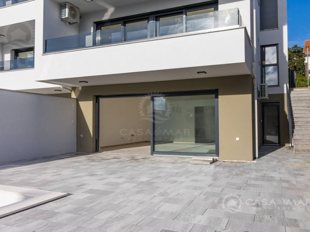 The apartment will have both a shared and a separate entrance, offering multiple usage possibilities. It can be divided into two units (one with a living room, one bedroom, and a garden, and the other with a living room, two bedrooms, and a terrace), although the two units will remain connected by an internal staircase. It can also be arranged as a two-story apartment with three bedrooms and two living rooms, or as a duplex with four bedrooms.