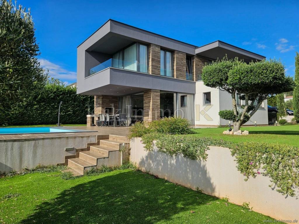 The garden is landscaped with Mediterranean plants and olive trees, with a spacious 45.25 m2 swimming pool and sundeck, and it is decorated with Semmelrock pavers. The villa stands out for its high-quality construction and top-quality equipment, including four inverter air conditioners, ALU carpentry, large lifting-sliding walls with three-layer glass, video surveillance and electric underfloor heating in all rooms that can be regulated via an app.