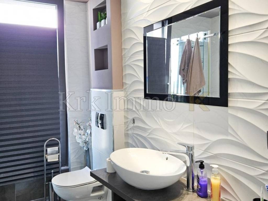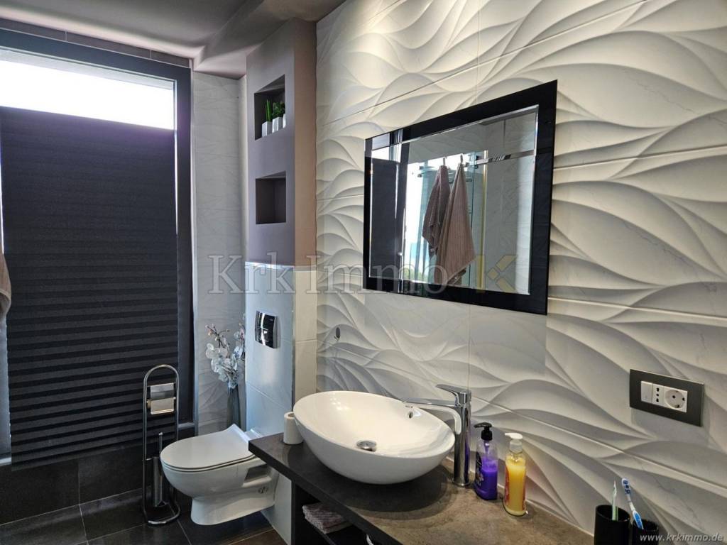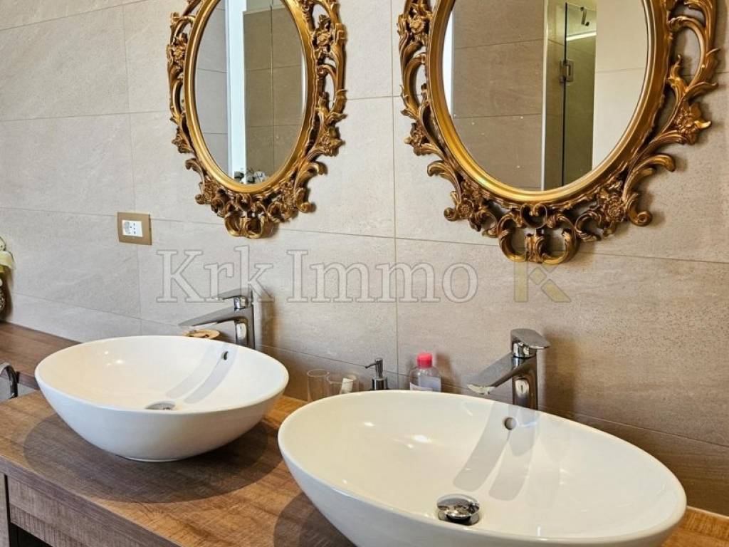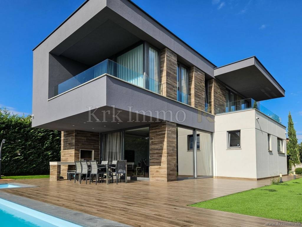 For sale is a luxurious detached villa on the island of Krk, in a quiet location near the town of Krk. The villa is spread over two floors with a total living area of ​​169 m2, while the plot occupies 800 m2.