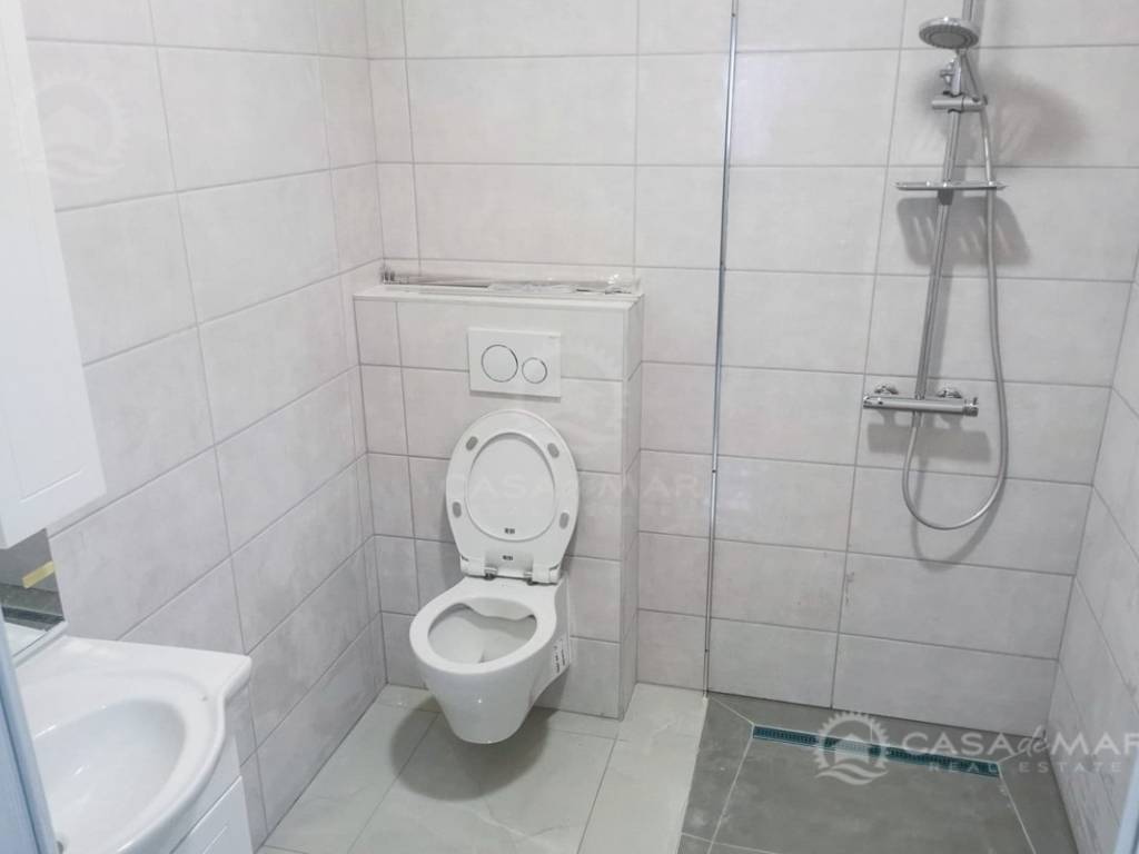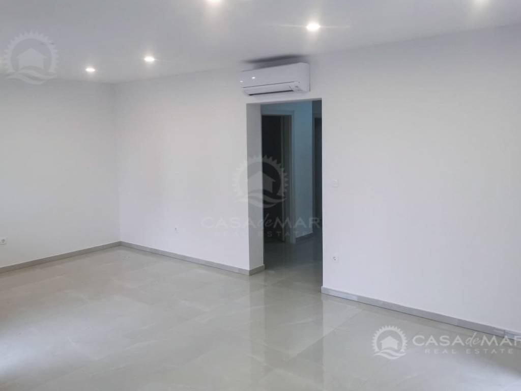 The apartment has a living area of 80 m² and consists of a living room, kitchen, dining area, terrace, two bedrooms, a bathroom, and a separate toilet. The apartment is air-conditioned, equipped with quality PVC joinery, ceramic flooring, and is being sold unfurnished.