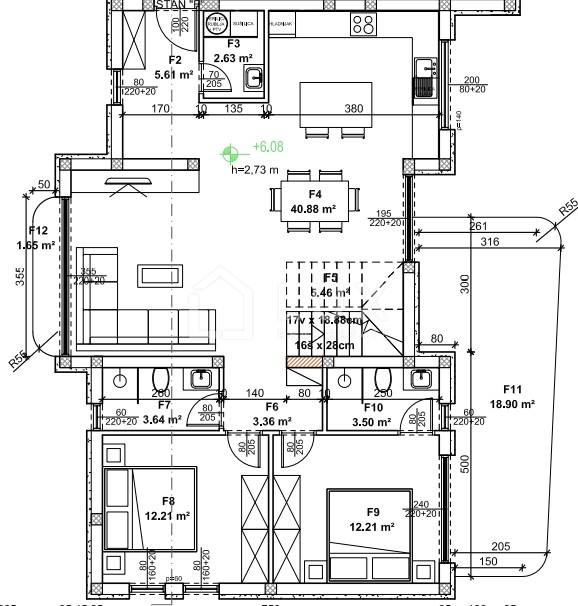 The apartment is sold on a turnkey system, carpentry and floor coverings, underfloor heating, aluminum joinery with triple glazing. The estimated delivery date of the apartment is 2025. The stated price is valid only if the apartment is purchased in the construction phase, after the building is finished the price will be higher, therefore the purchase of this apartment represents an opportunity for investors.