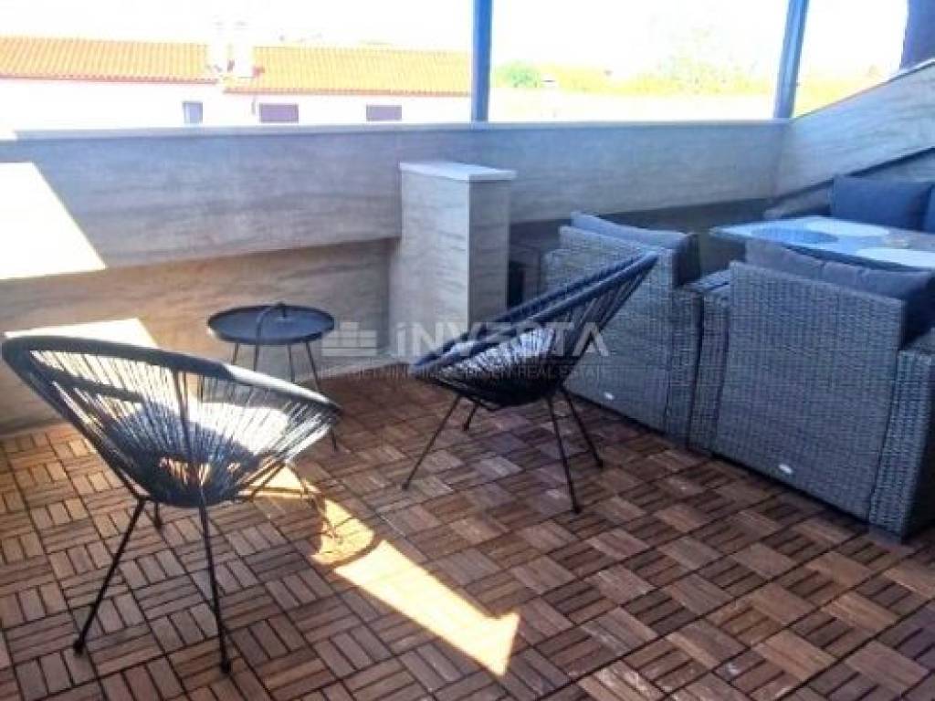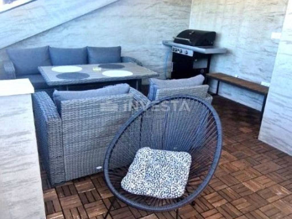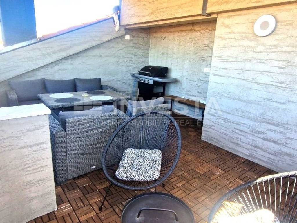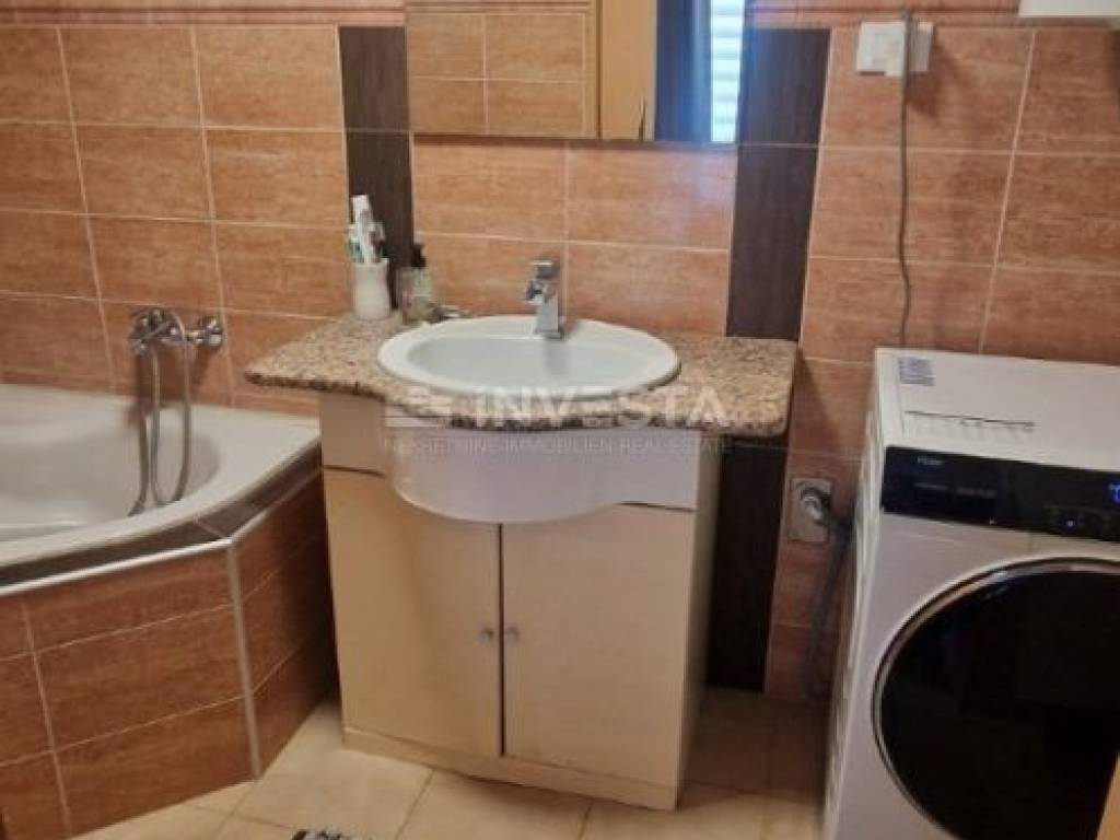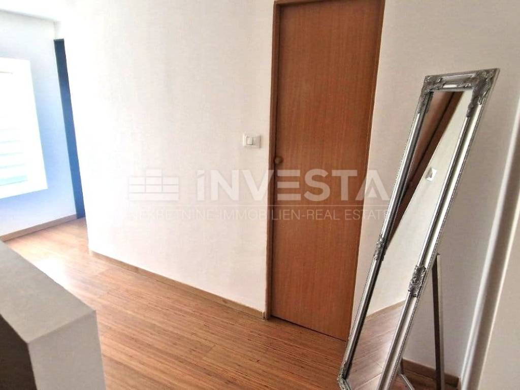 PROPERTY DESCRIPTION: The house consists of 130m² of living space divided into four floors: ground floor, first and second floor with a beautiful and spacious covered terrace in the attic of the house measuring 20m². The ground floor comprises an entrance hall, a spacious kitchen, a dining area, and a living room. All floors of the house are connected by an internal staircase. On the first floor, there is one bedroom with an en-suite bathroom and a separate guest toilet. The second floor has two bedrooms and a space where there is a possibility of creating an additional bathroom. In the attic of the house, there is a large covered terrace with a sea view, equipped with a grill and summer seating furniture.