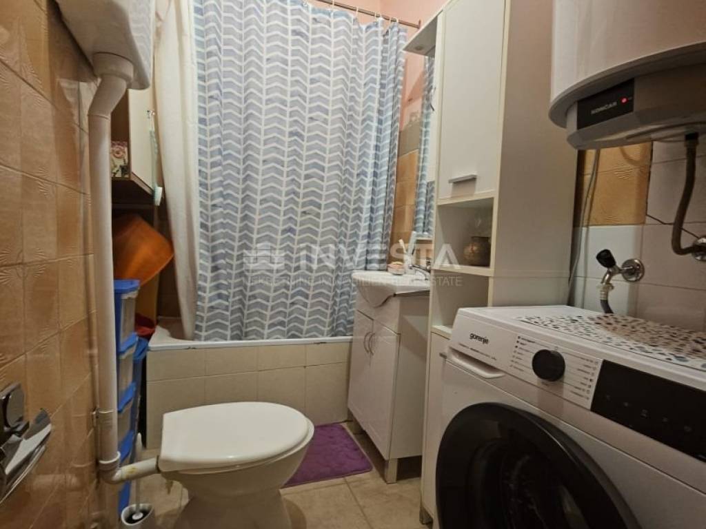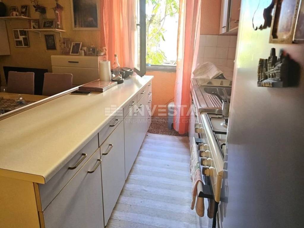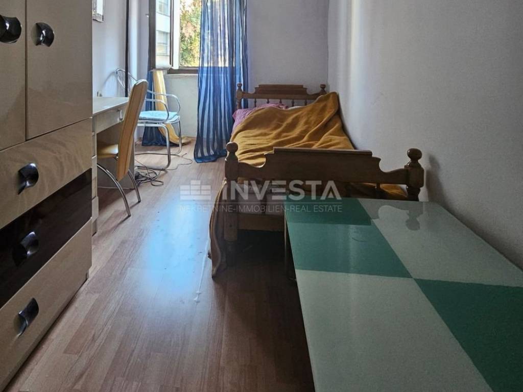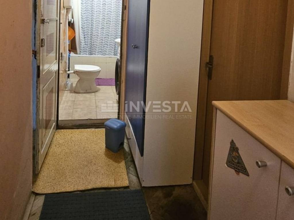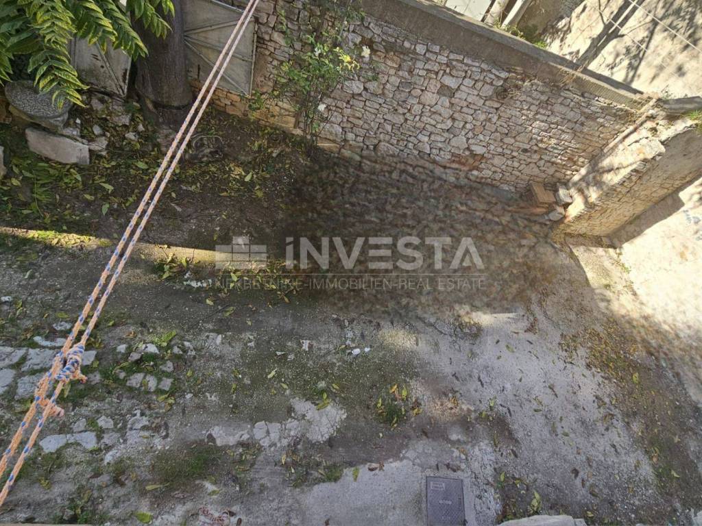 An apartment is for sale on the 1st floor of an old building in the very center of the city of Pula. The apartment has an area of 61.88 m² and consists of a living room with a dining area and kitchen, a hallway, 3 bedrooms, and a bathroom. A shared courtyard of 43 m² is available for parking.