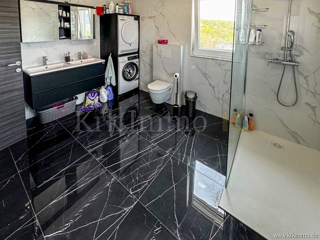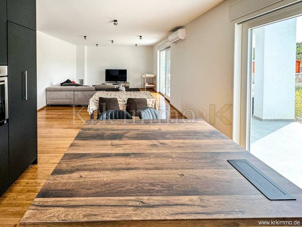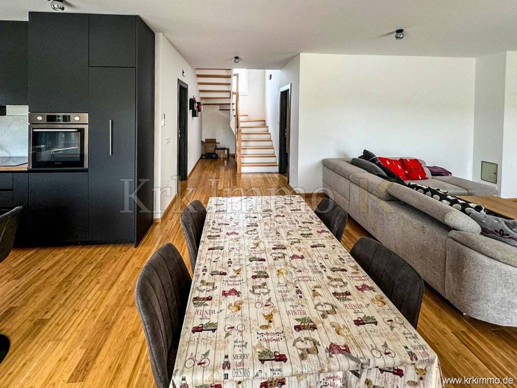 For sale is a furnished detached house in Vrbnik on the island of Krk, in a quiet location near the sea and the center, only 800 meters from the beach. This modern low-energy prefabricated house is spread over two floors and has a total area of 150 m2, and is characterized by top-quality construction and equipment, providing maximum comfort and energy efficiency.