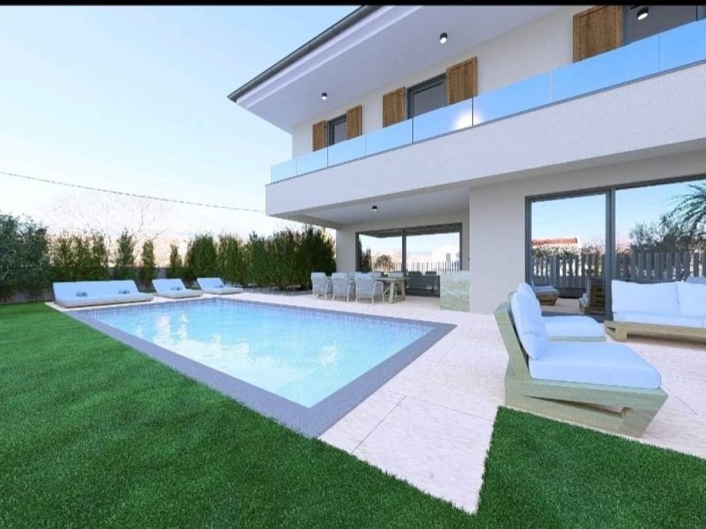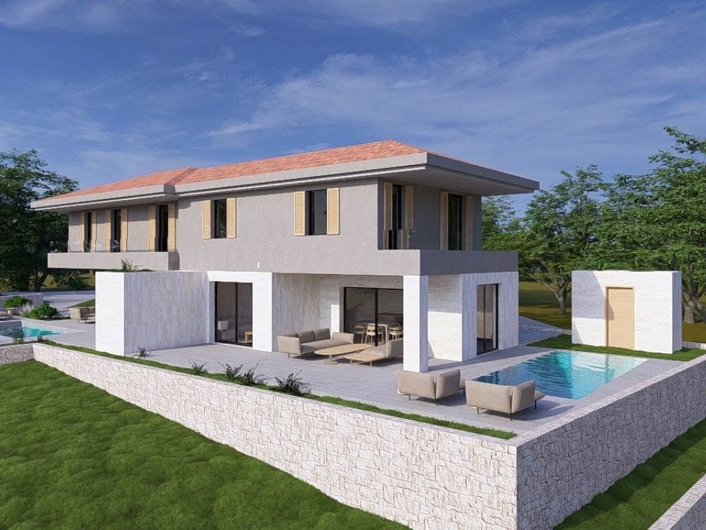 A new semi-detached house with a swimming pool is offered for sale by KRKIMMO d.o.o., located in a quiet area of the wider Malinska region, on the island of Krk. The property is sold fully furnished and equipped and is intended for comfortable family living or as a quality investment for future rental.