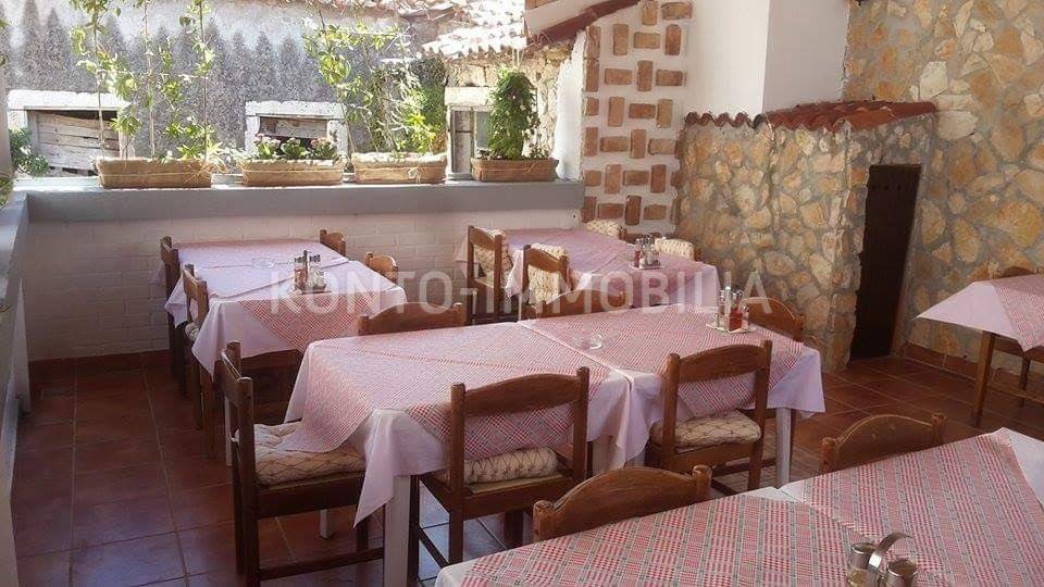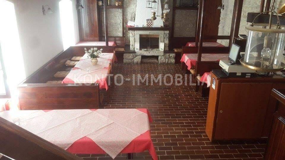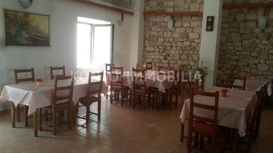 Ugostiteljski objekt - restoran u samom centru starogradske jezgre Raba, koji se sastoji od ulaznog prostora, sale za prijem gostiju sa šankom i kuhinje u visokom prizemlju, te unutarnjeg stepeništa koje vodi na kat gdje se nalazi dodatna sala za goste, terasa, te sanitarije i garderoba. Objekt ima 160 m2 zatvorenog prostora i 40 m2 natkrivene terase na katu. Restoran posluje dugi niz godina i ima uhodano poslovanje, te se iznajmljuje kompletno opremljeno sa svim potrebnim inventarom i uređajima. U sali za prijem gostiju na prvoj etaži nalazi se kamin, te je prostor uređen u primorskom stilu, sa kamenim dijelovima u interijeru i drvenim namještajem. Prostor je klimatiziran, renoviran prije 15-tak godina.