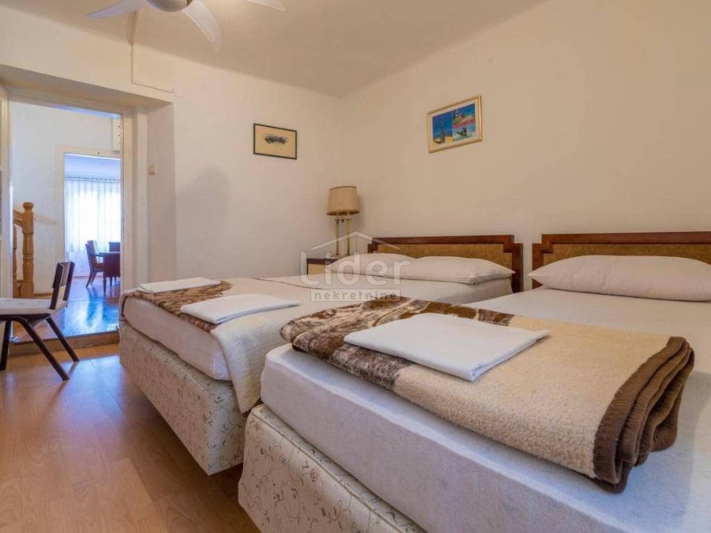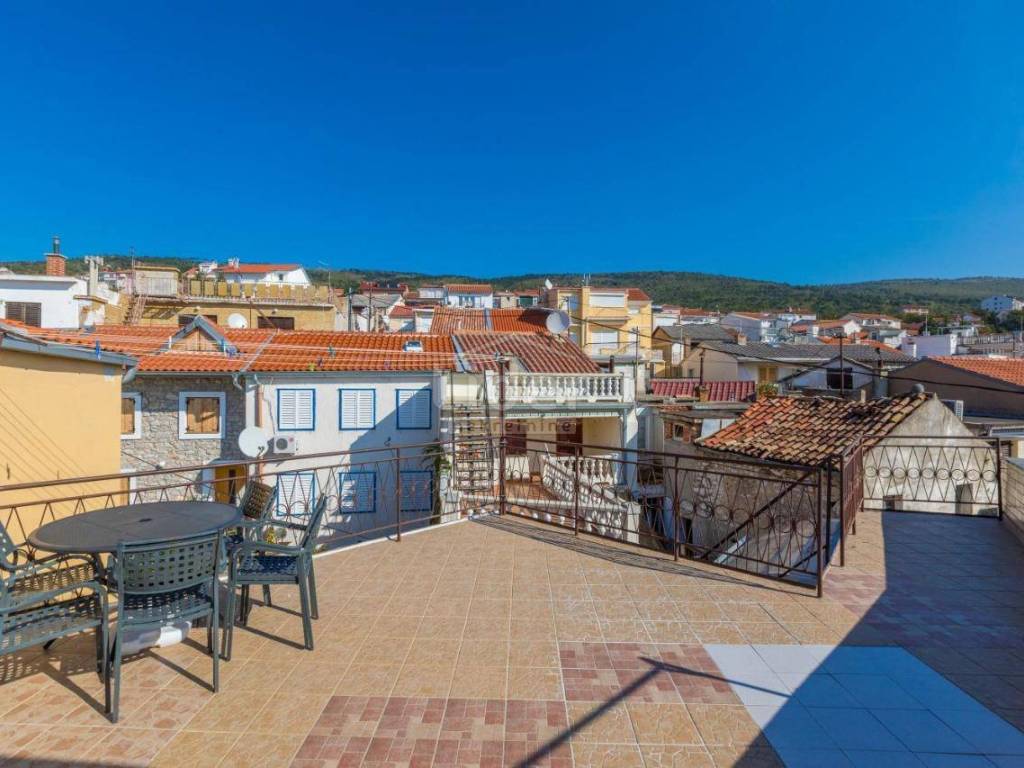 Selce, we are selling a house in the center with 5 bedrooms, 3 bathrooms, 2 kitchens, a tavern. The house has 3 floors, and at the top there is a beautiful terrace with a view of the sea. There is also a terrace on the second floor. The property has new exterior joinery and a new facade. It is located in a great location near all amenities and is suitable for a comfortable family life or for rent.