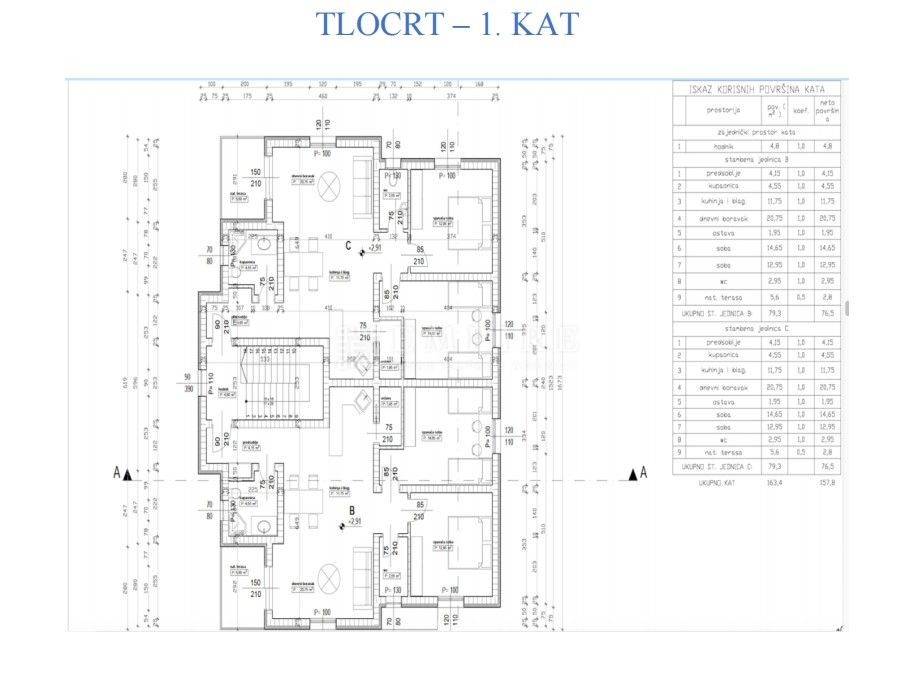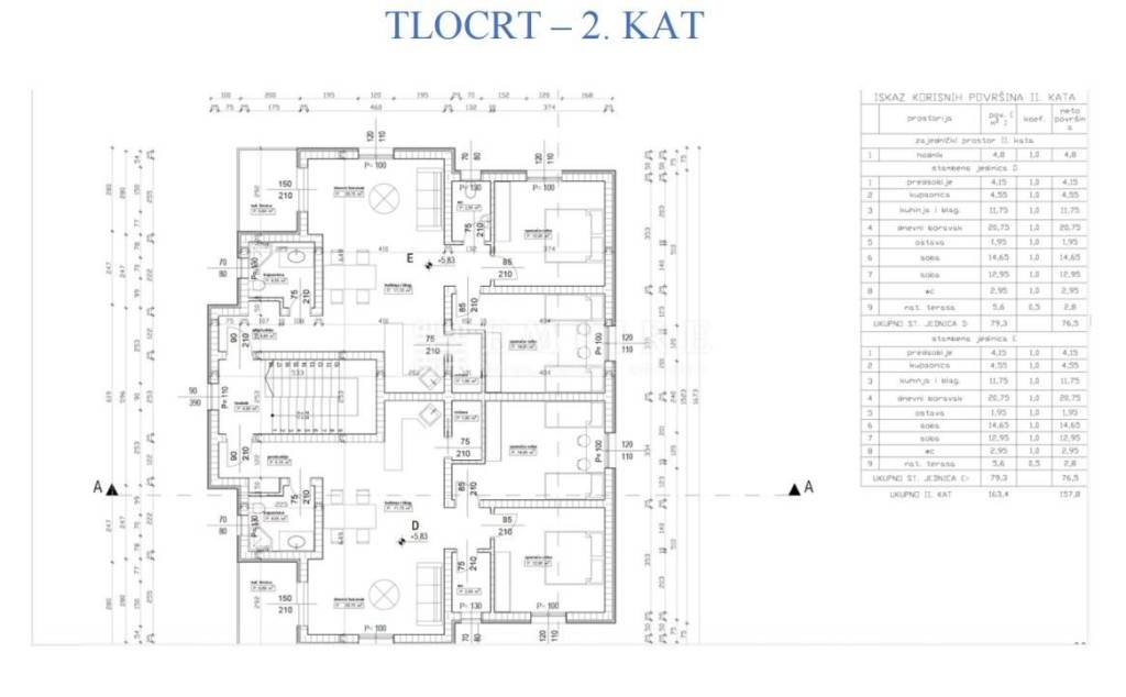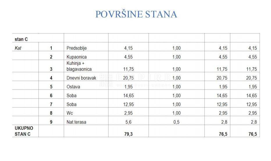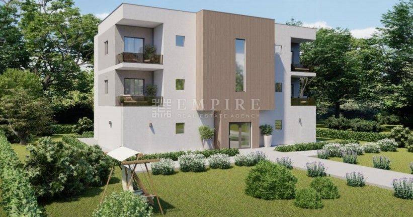 or sale are apartments in a new modern building, which will consist of a total of 5 residential units. The apartments are located in an excellent location, close to the center of Poreč, just 5 km from the beach. Available are two-bedroom apartments, two on the first and two on the second floor. The apartments have 76.5m² and consist of an entrance hall, living room, open-plan kitchen and dining room, pantry, bathroom, two bedrooms, WC, and a terrace offering a beautiful view of the surrounding neighborhood. The first phase of underfloor heating with water is installed, and cooling is provided through air conditioning units. Upon request, a heat pump can be installed. The apartment also comes with a parking space, and additional parking spaces can be purchased. The main advantages of this apartment are its proximity to all essential amenities for living, a peaceful location, closeness to the sea and the center, and high construction quality.