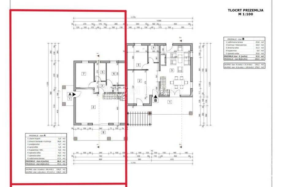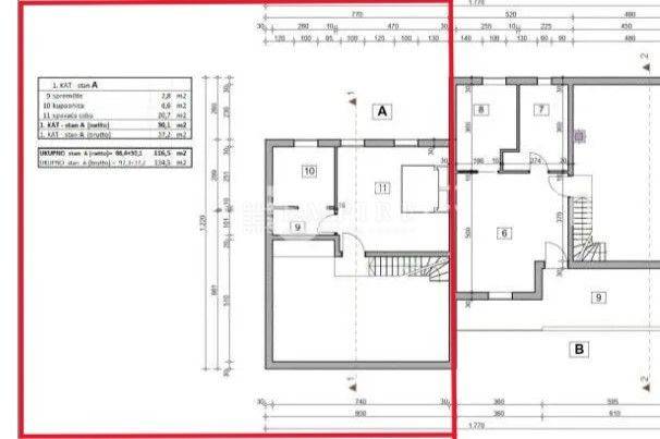 A semi-detached house with a pool is for sale in Višnjan, labeled as property "A." The house offers a total living area of 116.5 m² spread over two floors.