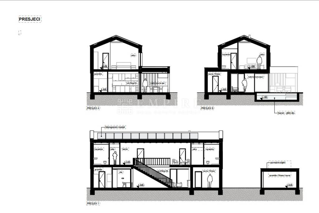 The construction is expected to be completed by June 2025, and the villas are sold unfurnished, with the possibility to negotiate the choice of finishing materials. The location's proximity to essential services (shops, schools, post offices, health centers, restaurants) makes it ideal for family living or tourist rental.