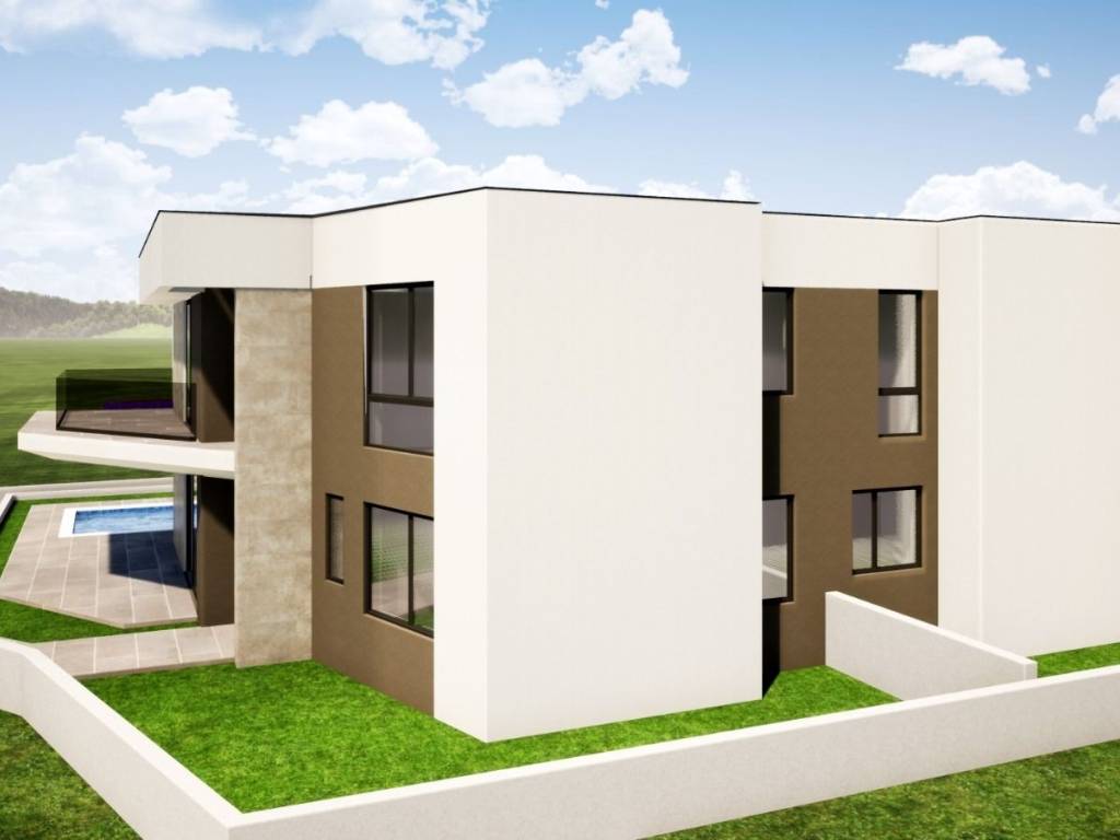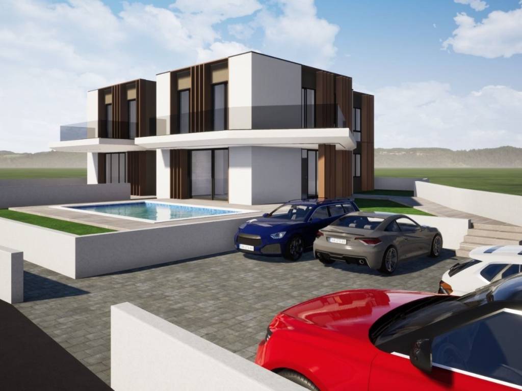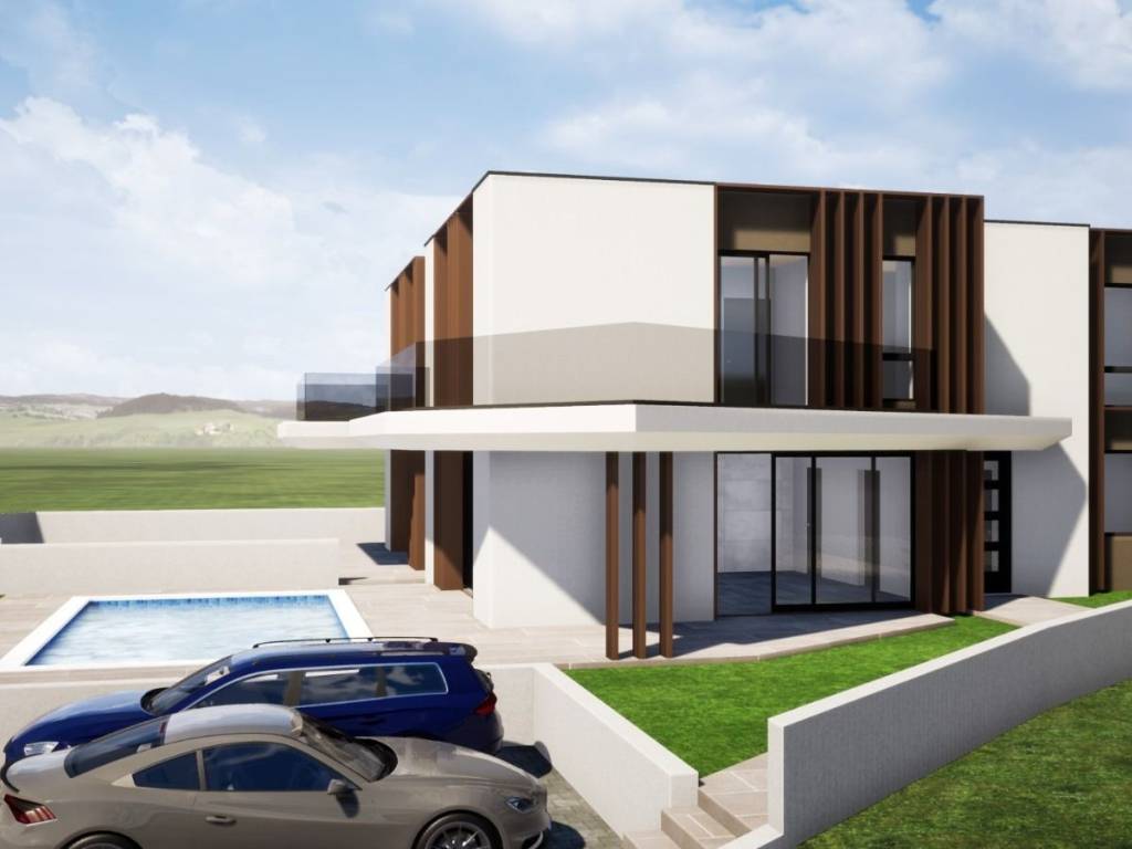 U mirnom mjestu nadomak grada Krka, nalazi se ovo atraktivno građevinsko zemljište s pogledom na more s kata. Parcela dolazi s projektom za dvije moderne dvojne vile, svaka s privatnim bazenom, ukupne neto površine 304 m².