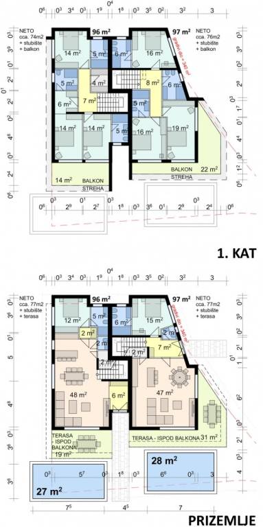 Prema planu, svaka kuća će sadržavati četiri spavaće sobe, svaka s vlastitom kupaonicom, što jamči visoku razinu komfora i privatnosti. Trenutno je u tijeku postupak ishođenja građevinske dozvole, čime budući investitor preuzima uređenu i pripremljenu nekretninu spremnu za gradnju.