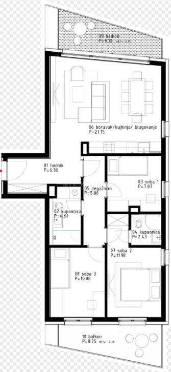 Three bedrooms Two balconies Two bathrooms Ideal Location: The apartment is located just 800 meters from the sea, providing an unparalleled opportunity for real estate buyers seeking luxury in Istria, especially in Poreč. Planned completion date is 01.09.2025.
