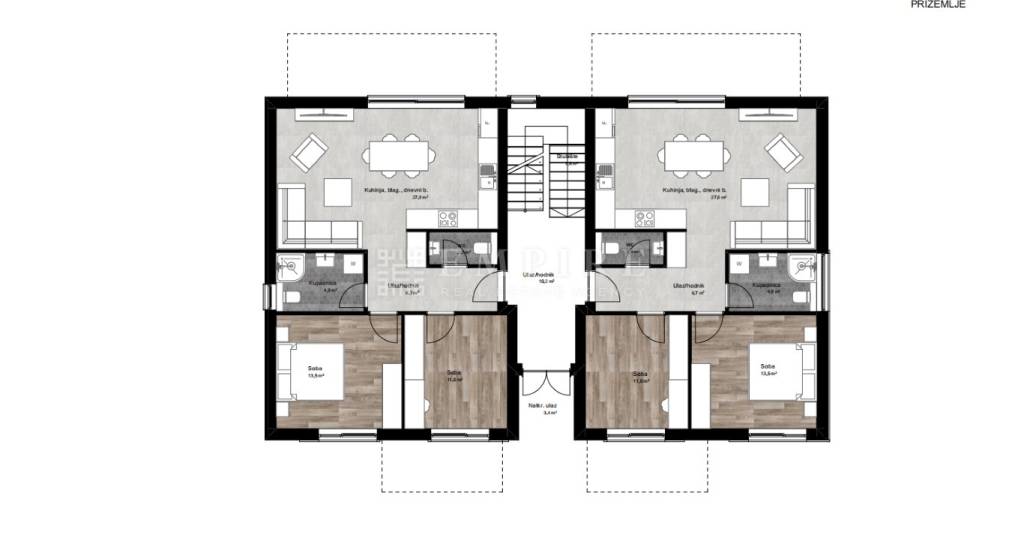 The apartment measures 71 m² and consists of a spacious living room connected to a modern kitchen and dining area, creating an ideal space for family gatherings and social events. Two comfortable bedrooms provide ample space for relaxation and peaceful sleep, while the modern bathroom and additional WC make everyday tasks easier.