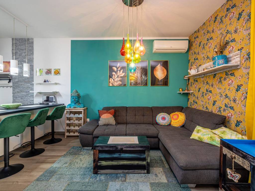 The interior space includes a hallway, a living room connected to the kitchen and dining room, two bedrooms, a toilet and a bathroom and an additional storage room, with the layout being functional and adapted to everyday use without unnecessary passages. The apartment is sold fully furnished and equipped, which allows immediate use without additional investments.