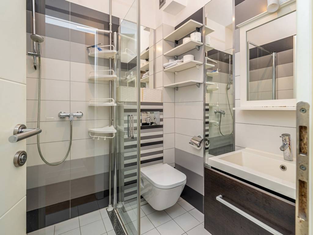 The exterior includes a closed loggia that can be used throughout the year, an uncovered terrace with a barbecue and an outdoor shower, which further emphasizes the Mediterranean character of the property and the quality of outdoor living. It also has its own parking space, which is a significant advantage in this area.