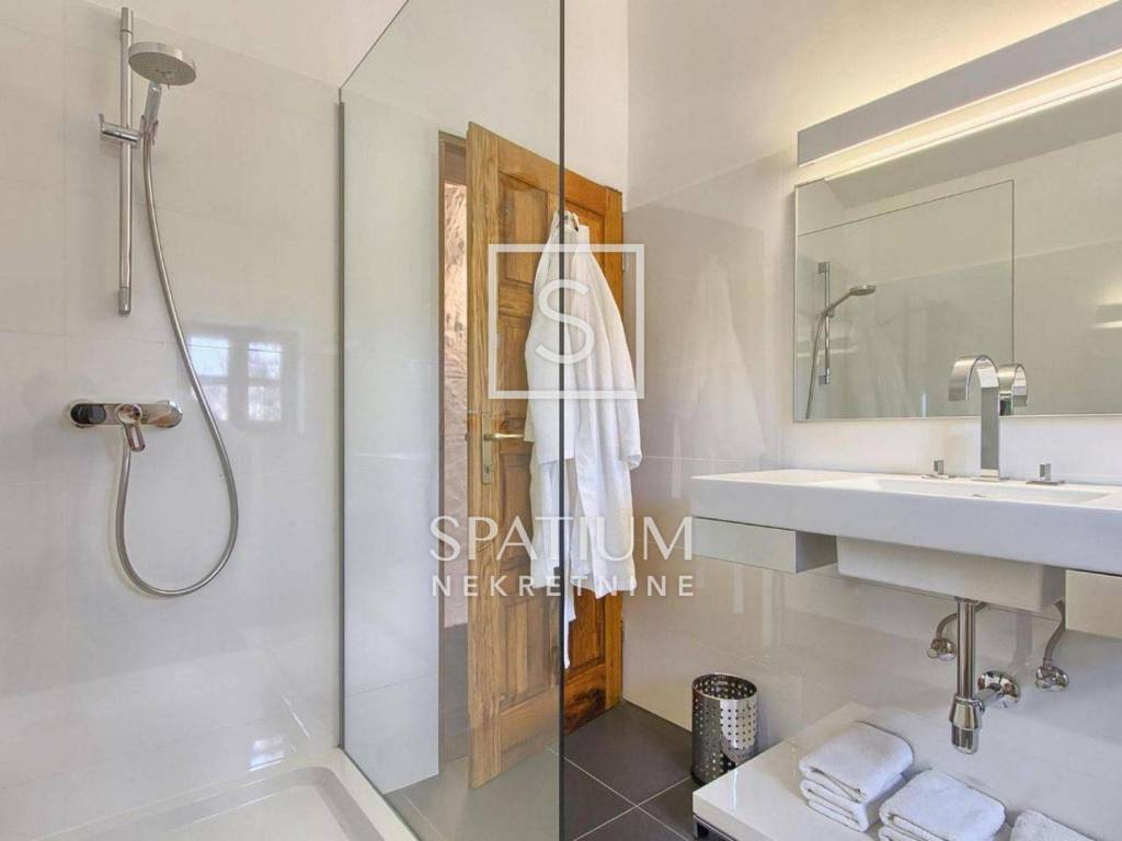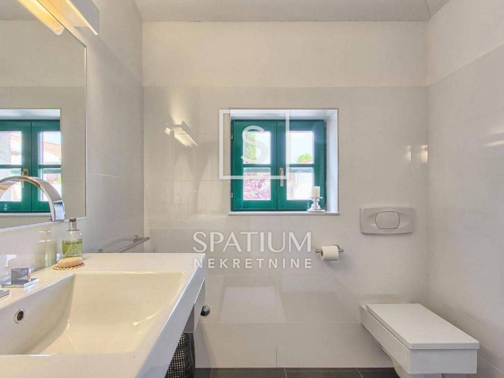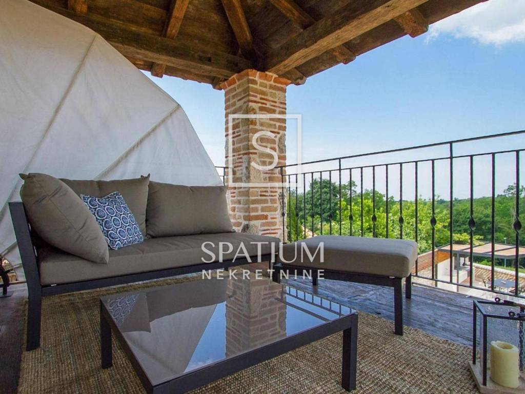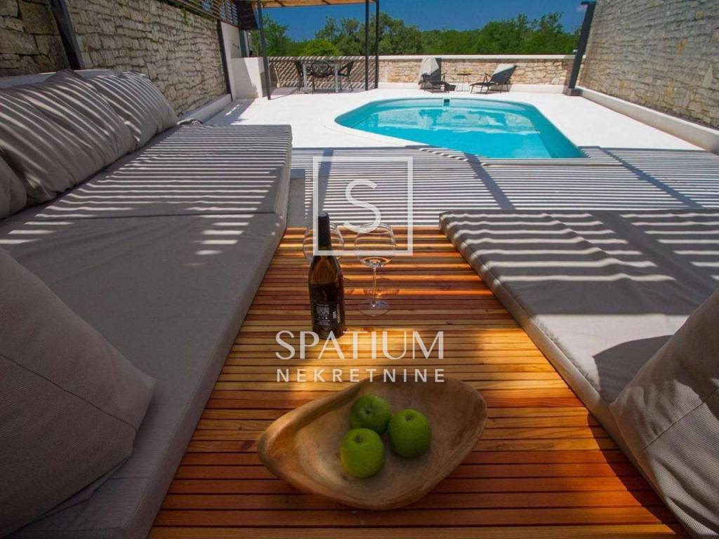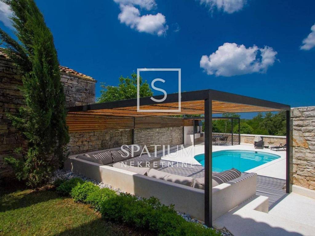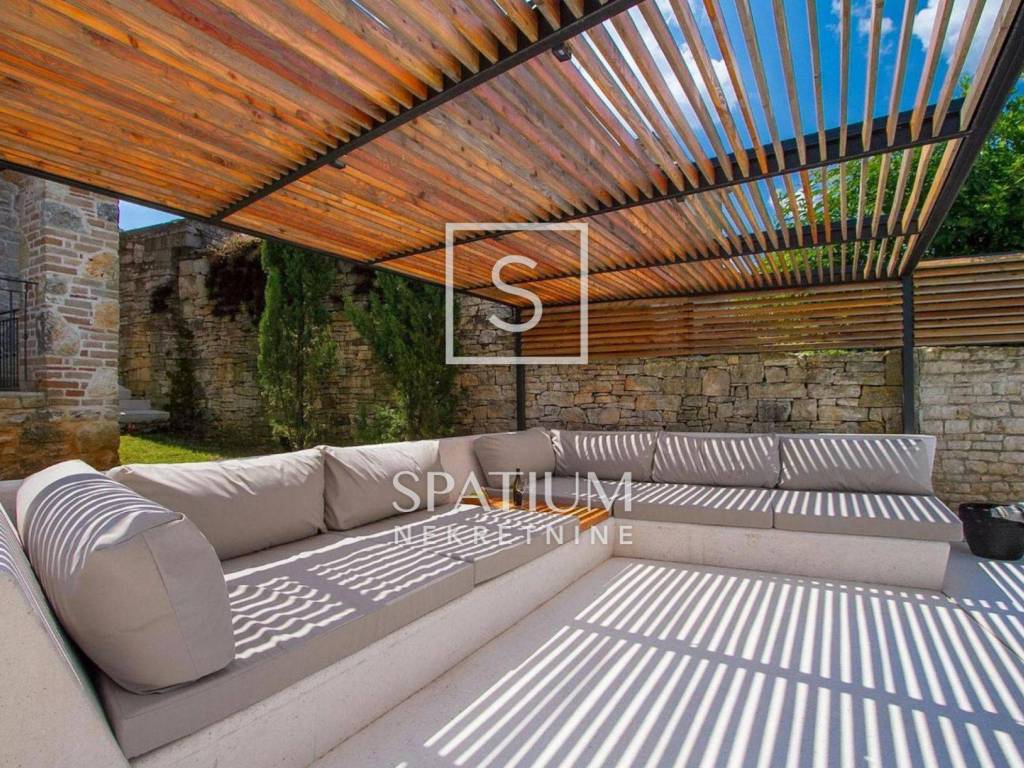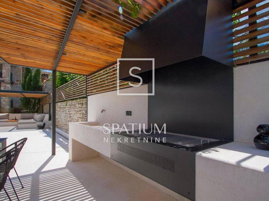 TINJAN, SURROUNDINGS, we are pleased to present a stone villa of 120 m², carefully reconstructed with great attention to detail. Combining modern design with traditional Istrian lifestyle, the villa exudes warmth and authenticity. Special care was given to the use of original materials – most of the walls are clad with old stone, while the interior reflects refinement and comfort. The ground floor consists of a fully equipped kitchen, dining room, spacious living room with fireplace, and a guest toilet. The upper floor offers two bedrooms with double beds, one of which has a terrace with panoramic views, as well as a luxuriously equipped bathroom. The 382 m² garden fully highlights the Mediterranean character of the villa – a well-maintained lawn, an old olive tree, and carefully designed details create an idyllic ambiance. The villa features private parking for two cars and is fully fenced, while the outdoor pool, clad in high-quality Italian tiles, is complemented by a summer kitchen with barbecue, terrace, outdoor shower, and a comfortable lounge area for relaxation.
