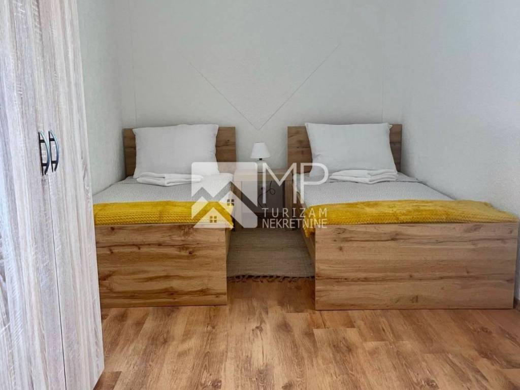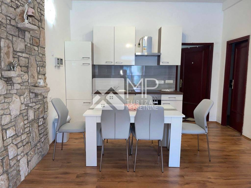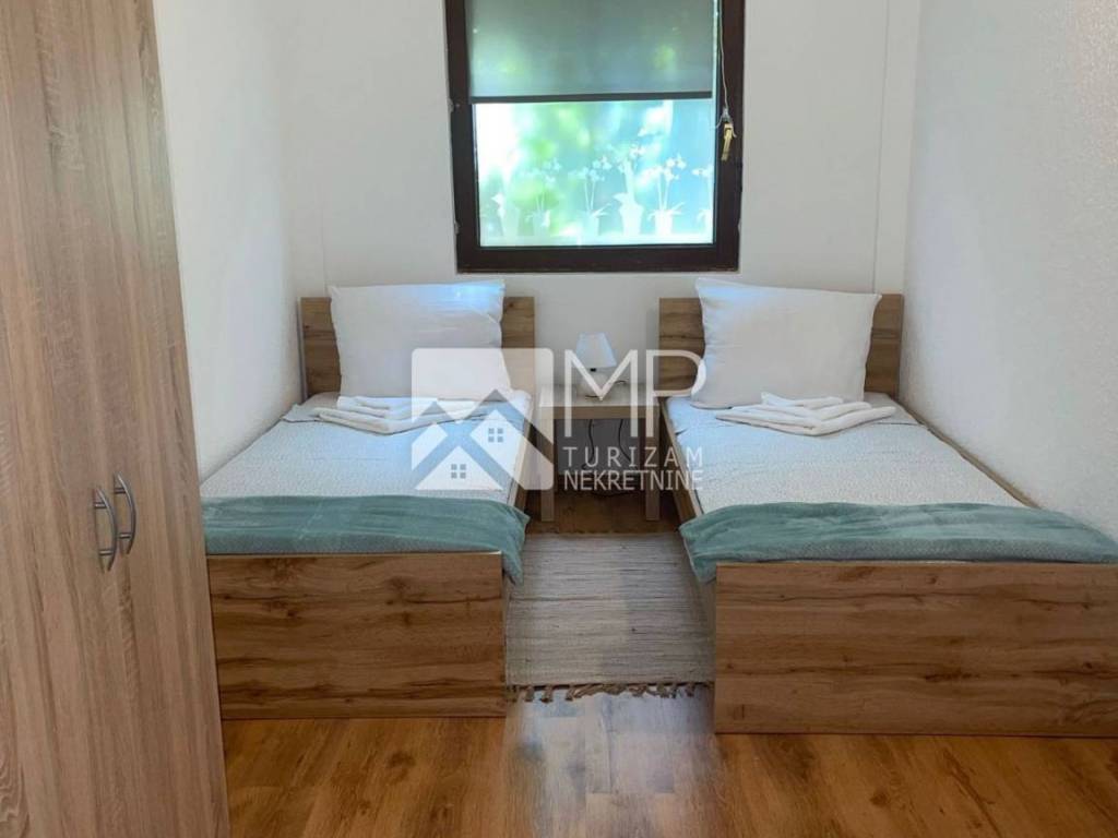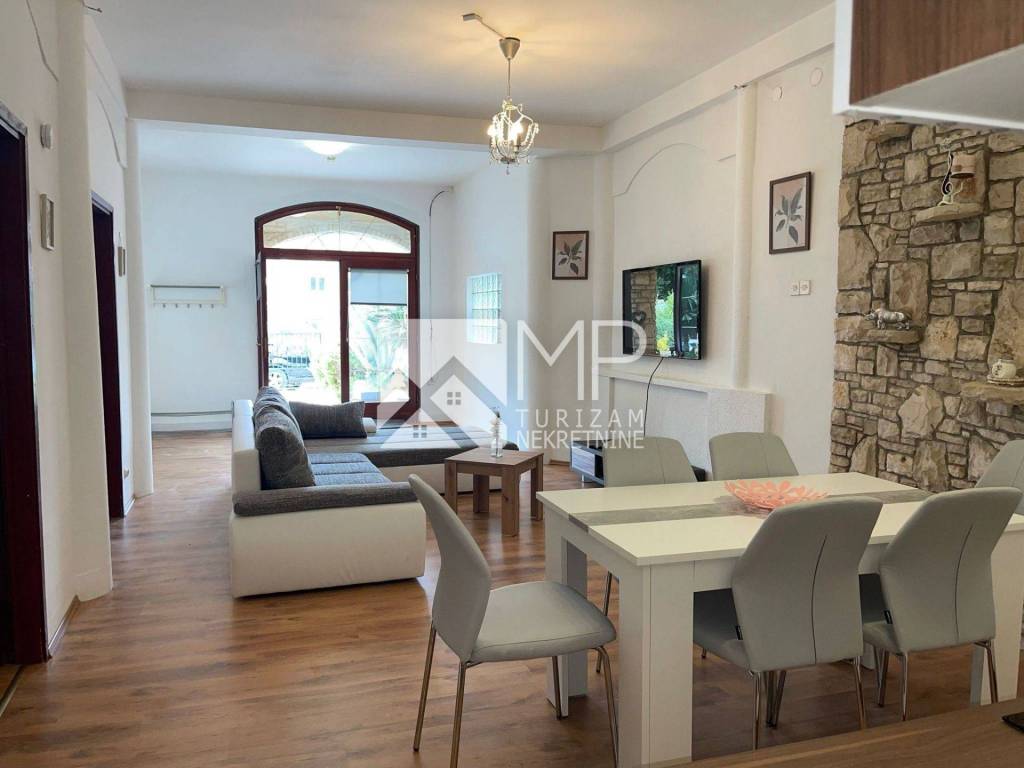 A beautiful, spacious apartment in a quiet location in Liznjan is for sale. The apartment is located in a villa of quality construction, which is decorated and maintained. The square footage of the apartment is 88.93 m2. The apartment is located on the ground floor of a total of two floors. It consists of a covered entrance, a large open space consisting of a kitchen, dining room and living room, bathroom, three bedrooms and a covered terrace in front of the entrance to the apartment. There is a spacious 28m2 swimming pool in the garden in front of the entrance, which is available to all future tenants. The apartment is fully equipped and furnished, property in order. Ideal for all those who want to engage in tourist rentals due to the capacity of people it can accommodate or for a larger family. The parking space is located in front of the villa. This beautiful apartment is located in a quiet area, yet close to all necessary amenities.
