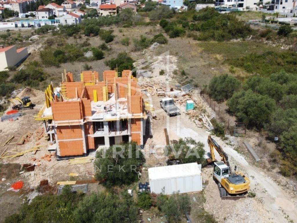 One-bedroom apartment for sale with a sea view, on the second floor of a residential building under construction. Apartment S8 has a surface area of 66.77 m² and consists of an entrance, kitchen, dining and living room, hallway, one bedroom, bathroom, a covered terrace, and a combination of covered and uncovered terrace located on the walkable roof. The apartment comes with two outdoor parking spaces and a storage unit in the basement. The building will consist of a total of nine residential units spread across the ground floor, first floor, and second floor. The construction is brick-concrete, with a 10 cm thermal facade. High-quality aluminum joinery with built-in insect screens will be used, and the apartments will feature large sliding glass doors with electric shutters. Air conditioning units will be installed in the living room and bedrooms for heating and cooling, while electric underfloor heating will be installed throughout the entire apartment. Construction work has begun, and the expected completion and move-in date is mid-2026. The building is located above the Bili brig neighborhood, close to everyday amenities.
