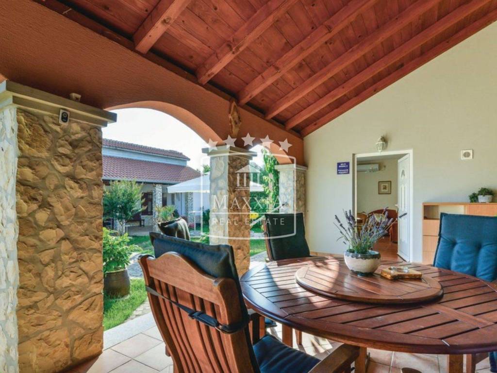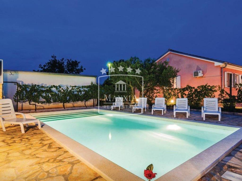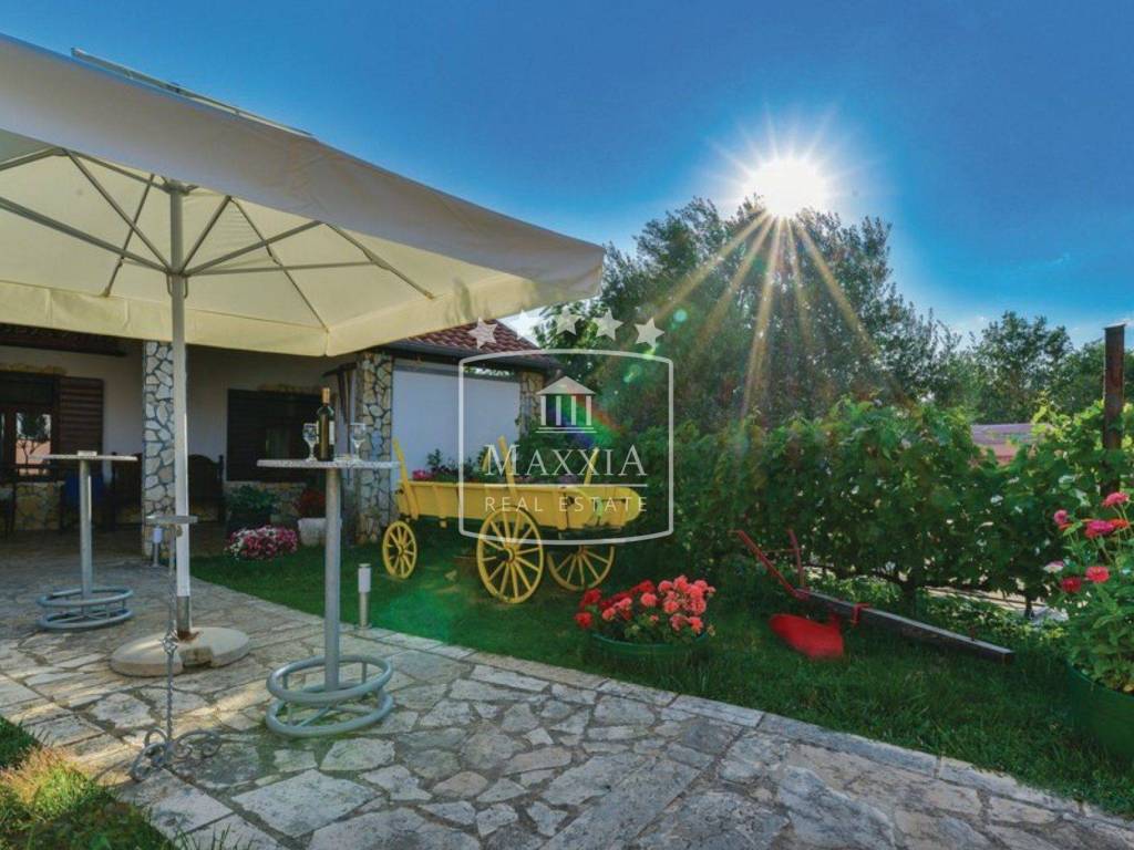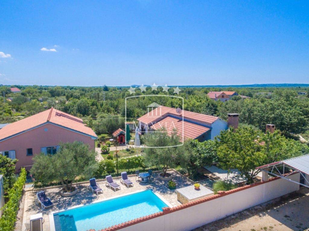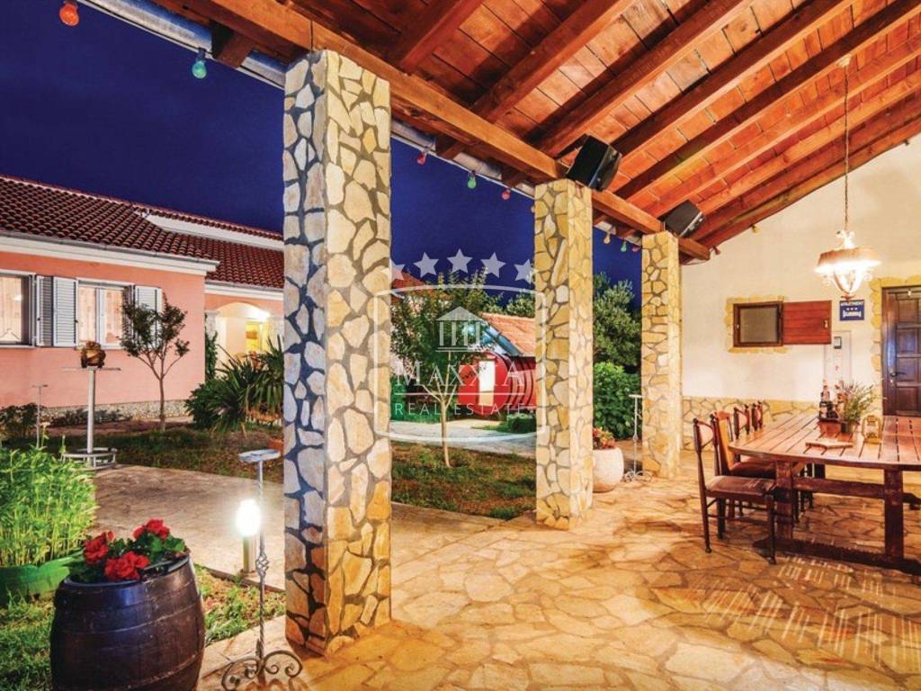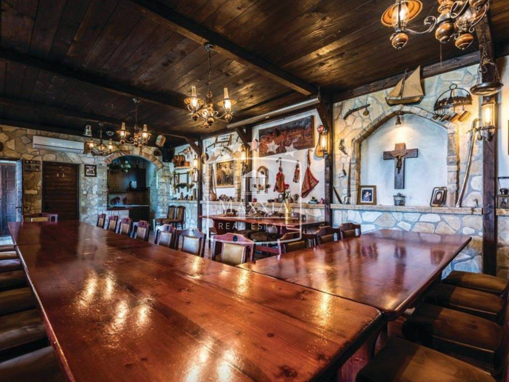 An exceptional property at the very entrance to the city of Zadar. Tourist and catering complex with a swimming pool located on a plot of 1493 m2. Residential building with an area of 175m2 and a restaurant (tavern) with an area of 156m2, outdoor pool, basement, garage, outdoor partially covered parking. The house consists of: - kitchen with dining room, - living room, - two bedrooms with bathrooms, - a separate one-room apartment of 140m2, - laundry room, boiler room and a pantry.