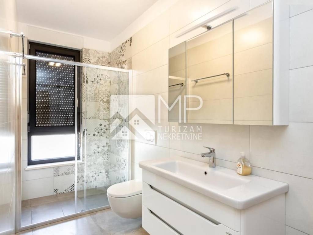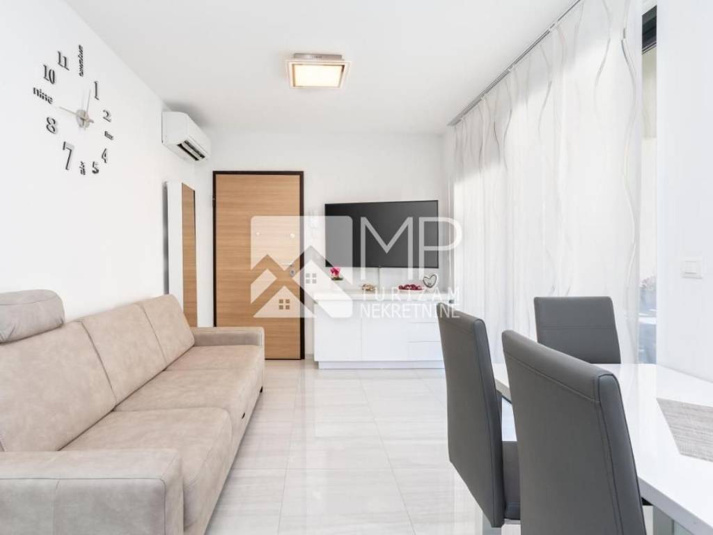 In Medulin, in a quiet location, just 50 meters from the sea, is this fully furnished and decorated apartment located on the first floor of a residential building built in 2020.