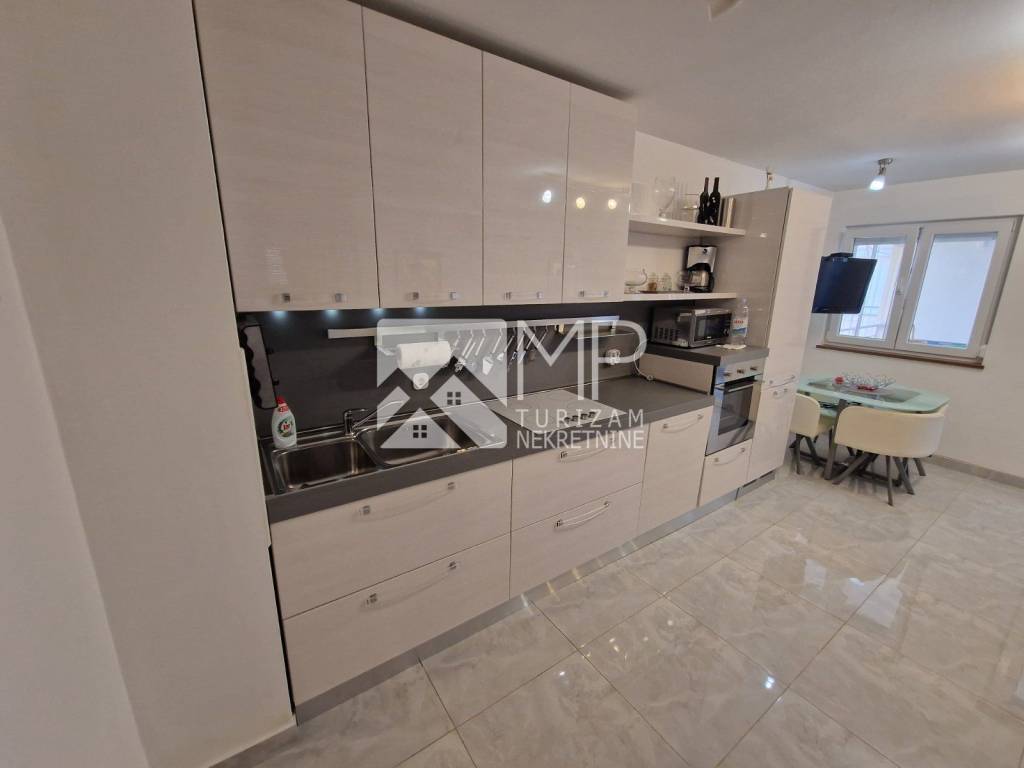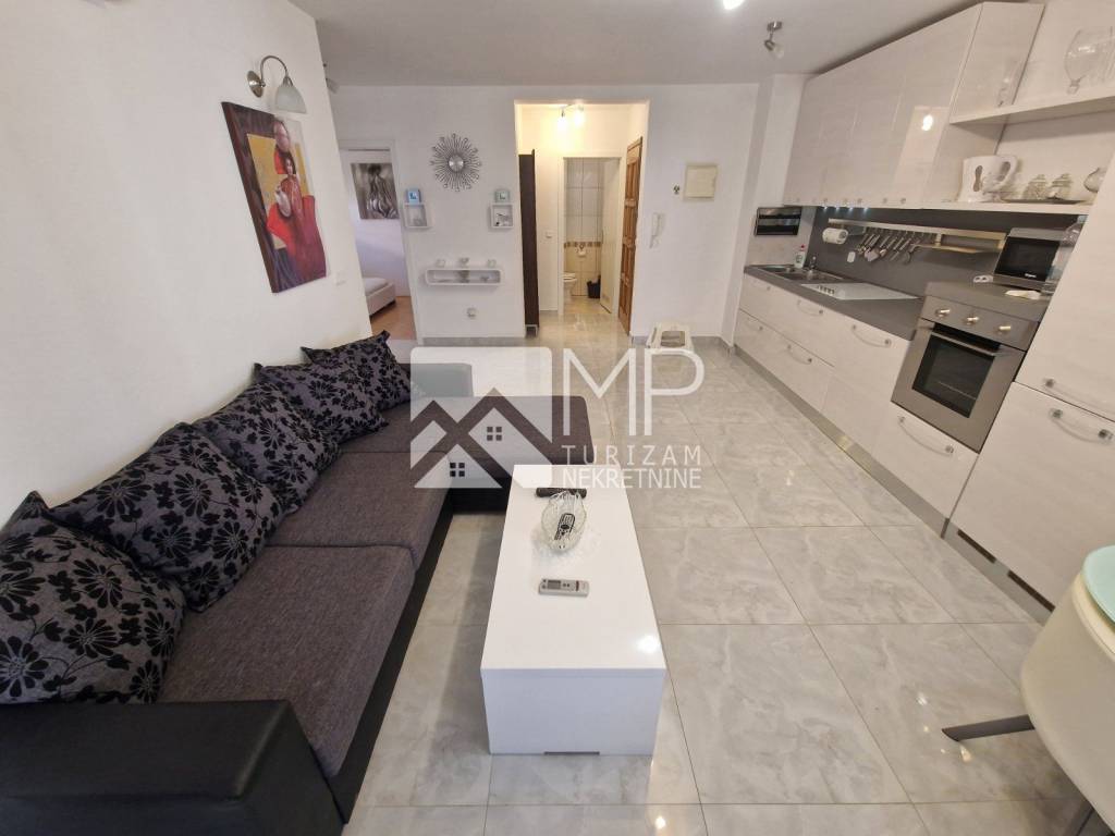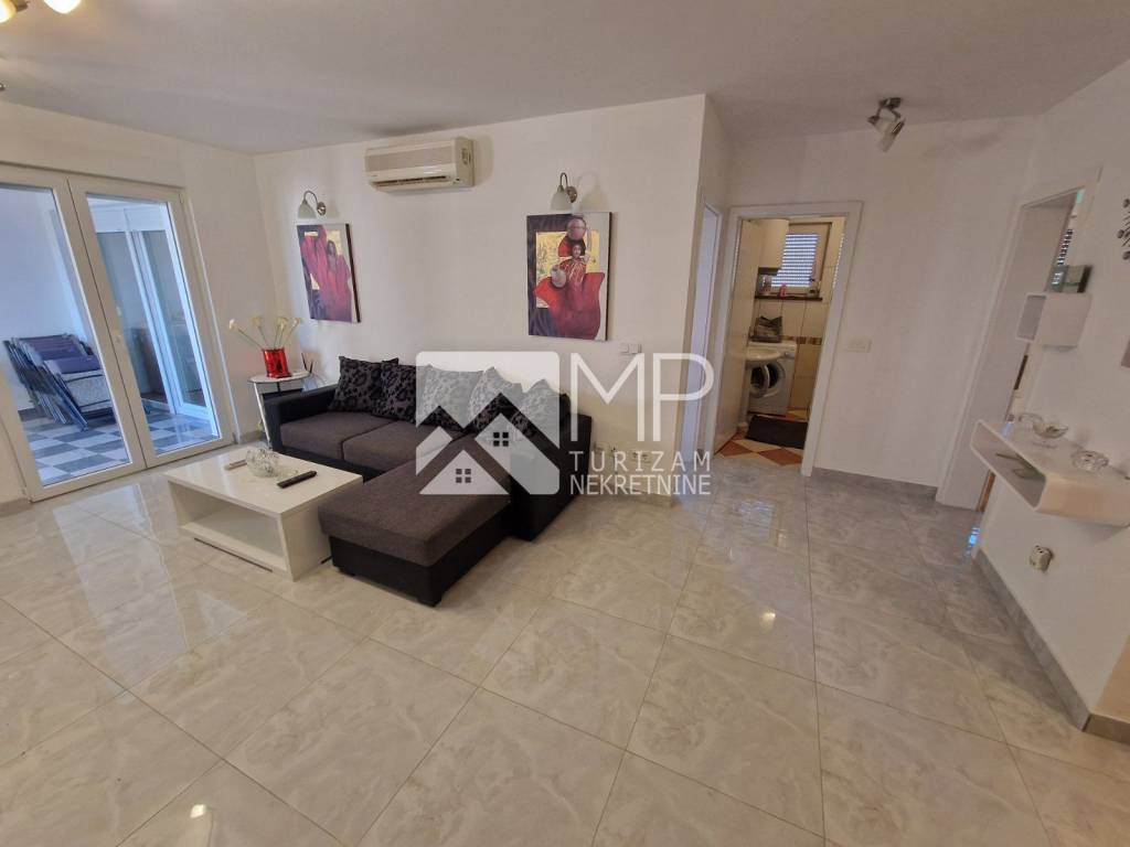 TOP LOCATION! 1ST ROW TO THE SEA. The building is located in a quiet location, only 20m from the sea and 300m from the first beach on Mukalba. The apartment is located on the first floor of the building, with a total area of 72.30 m2. It consists of an entrance hall, a toilet, a kitchen with a dining room and a living room, a covered terrace with a view of the sea and the Vižula Archaeological Park, a bathroom and three bedrooms. Exit to the terrace from the living room and one bedroom (bunk bed). The apartment is fully furnished and equipped and is being sold as such. The apartment has one owned parking space in front of the building. 1/1 ownership, no encumbrances.