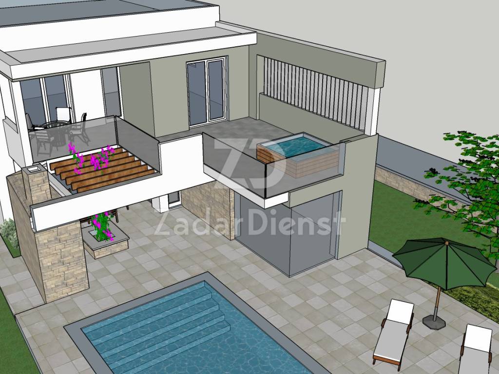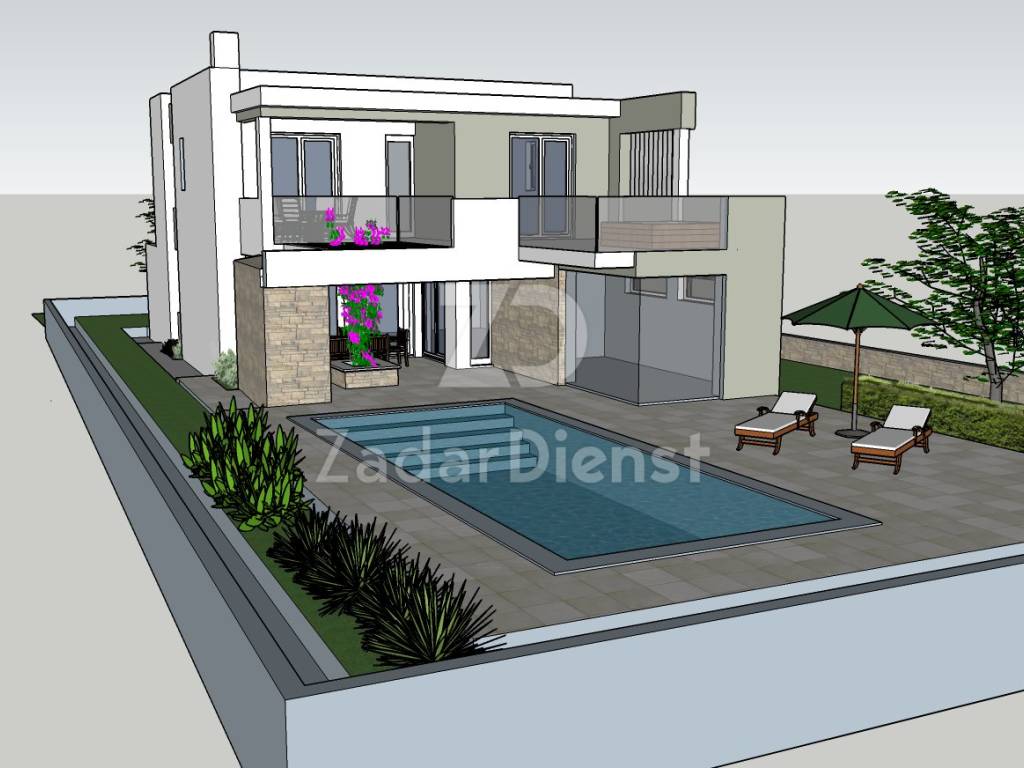 U prodaji građevinsko zemljište površine 697m2 s građevinskim projektom za vilu s bazenom.