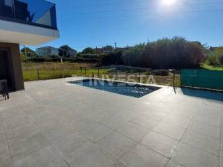 The building consists of four apartments: two on the ground floor, each with its own swimming pool, and two on the upper floor with a jacuzzi.